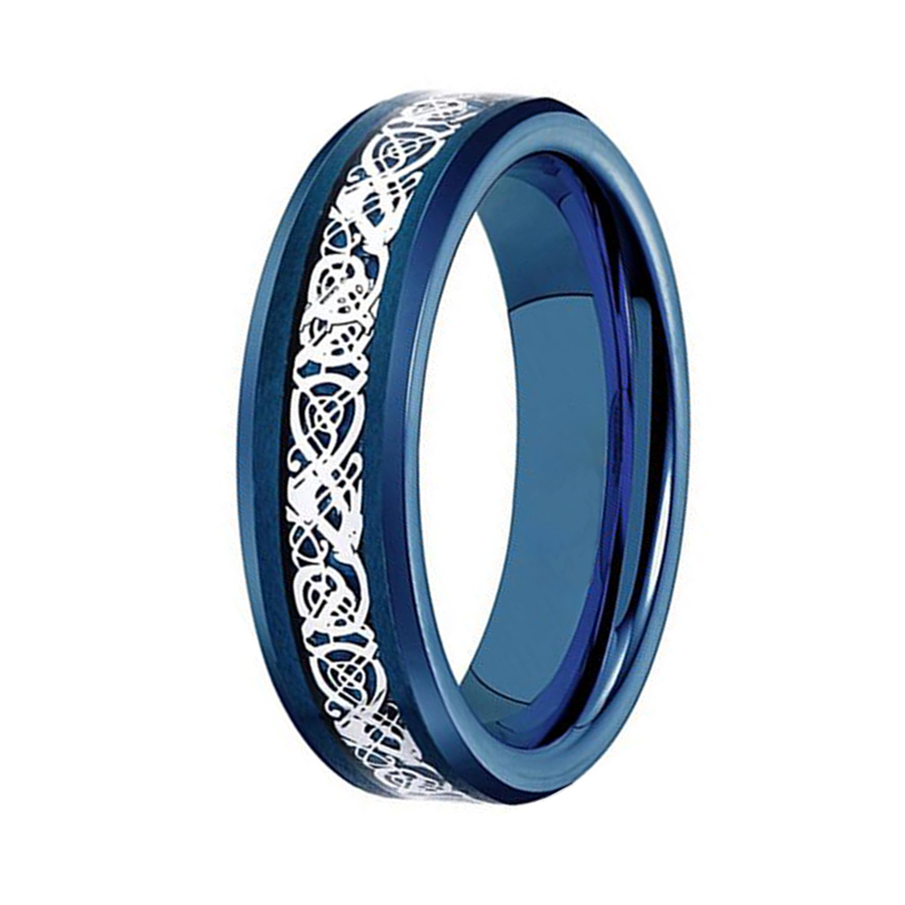 4MM 6MM 8MM Tungsten Carbide Rings Dragon Pattern Inlaid Blue Carbon Fiber