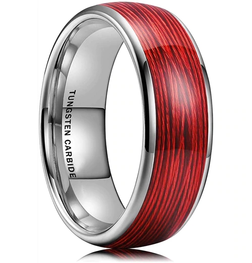 6MM 8MM Women's Or Men's Tungsten Carbide Red Wire Wedding Rings Silver with Red Wire Inlay