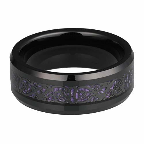 Overall, the Women or Men's Tungsten Carbide Wedding Band Rings with Celtic Dragon Knot Wedding Band Ring Black with Purple and Black Resin Inlay Celtic Dragon Knot is a bold and meaningful choice for couples who want matching wedding bands that symbolize their unbreakable bond and individuality.