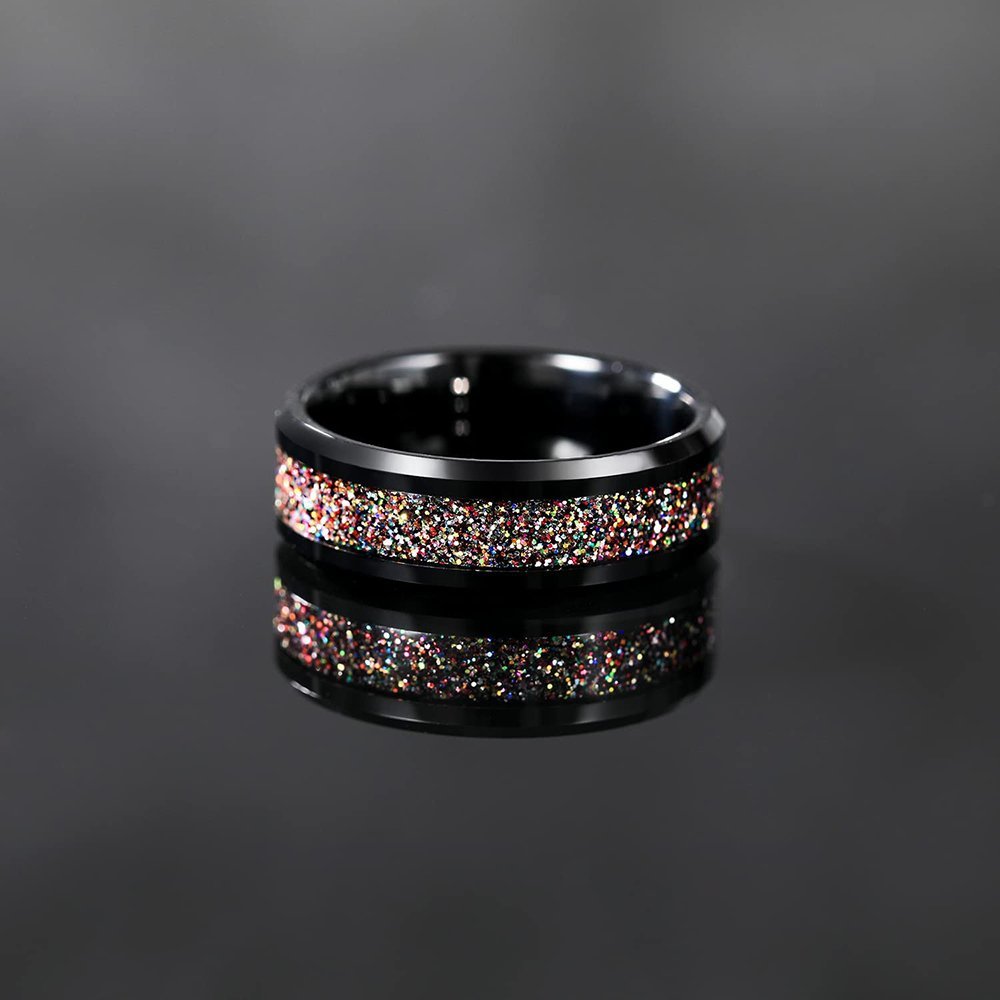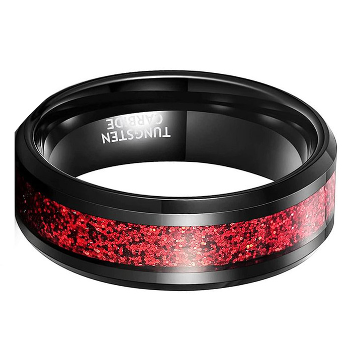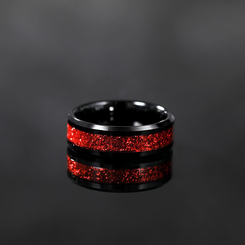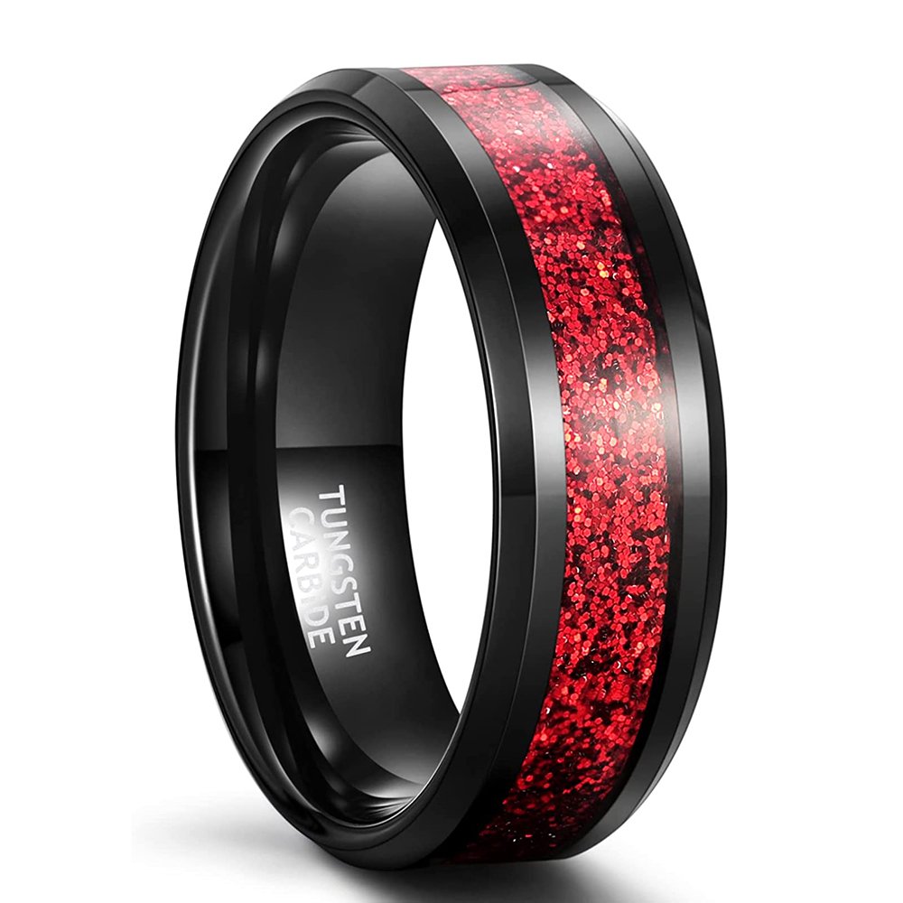 Men's Blue,Red and Silver / Black Sandstone Tungsten Carbide Wedding Band Rings, Flat Edges Ring and Comfort Fit With Mens For Width 8MM.