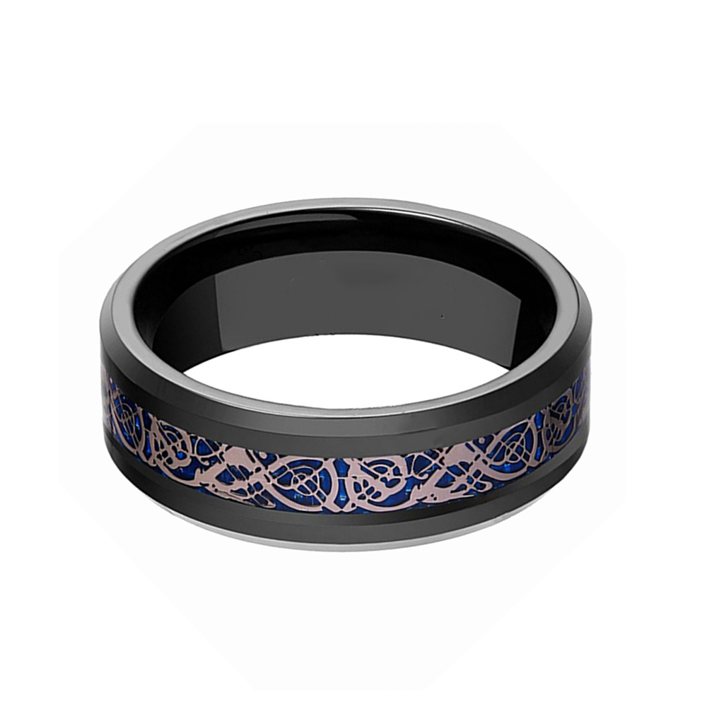 8mm Black Tungsten Wedding Band Ring with Celtic Dragon and blue Carbon Fiber Inlay, We Guarantee Each Ring Sold in Our Store Stands for the Best Quality In the Market. Giving US An Chance, You Will Save Much More Money!
