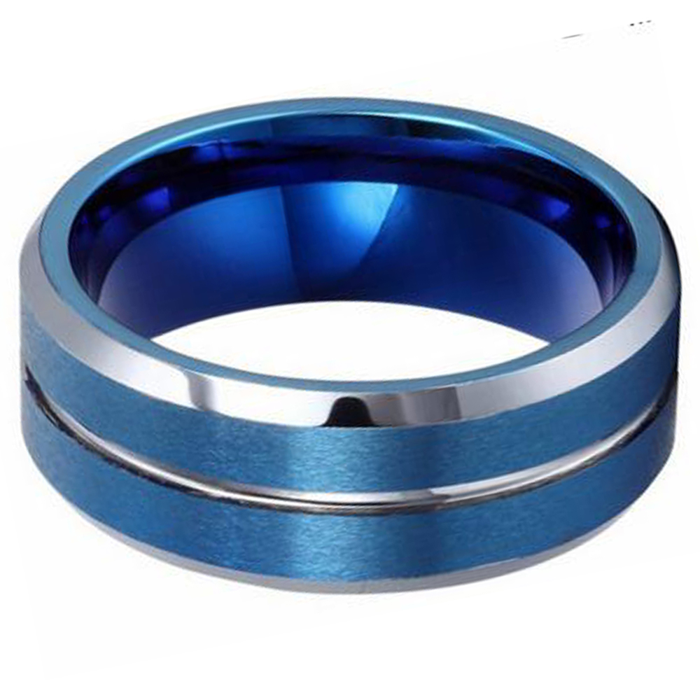 This beautiful tungsten ring is individually handcrafted by skilled artisans.It features matte blue finish with silver center groove and silver edge,beveled edges and interior in comfort fit design.The sleek ergonomic design has a comfort fit that fits perfectly to the finger without discomfort, and will barely feel it on the finger.