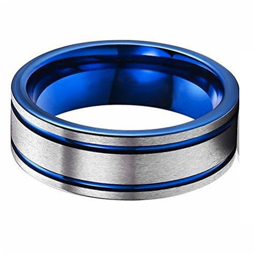 Women's Or Men's Tungsten Carbide Wedding Band Matching Rings,Duo Tone Silver and Blue High Polished Silver Tone Beveled Edge Double Groove Tungsten Carbide Bands Ring With Mens And Womens For Width 4MM 6MM 8MM 10MM