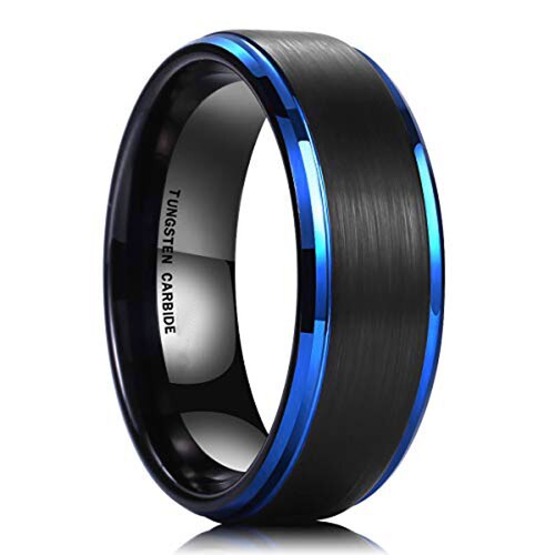 Women's Or Men's Tungsten Carbide Wedding Band Rings,Blue Edge Ring with Black Matte Finish Top Ring With Mens And Womens For Width 4MM 6MM 8MM 10MM