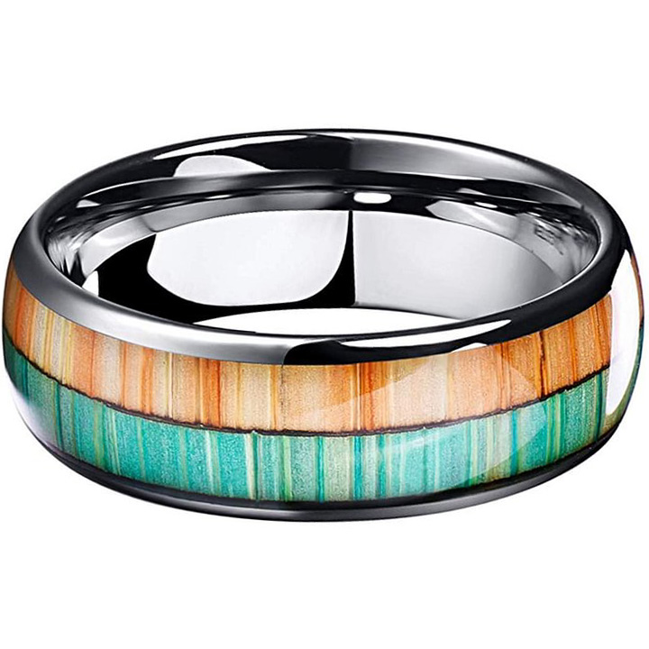 8mm Double color wood inlay & domed style & genuine tungsten carbide