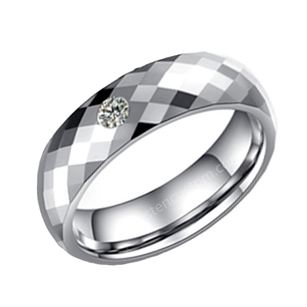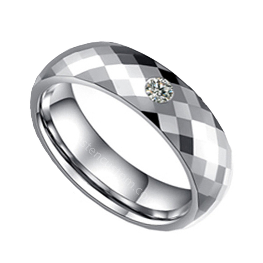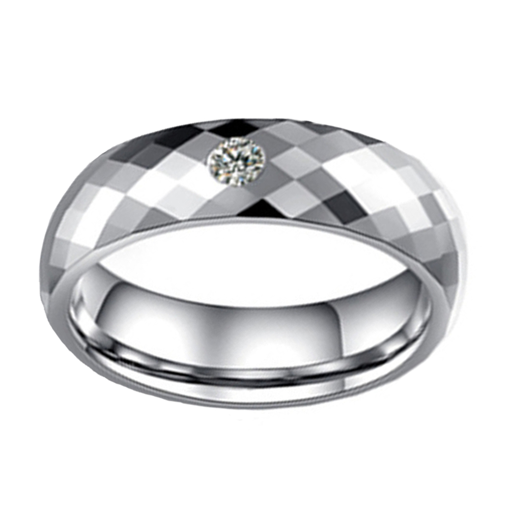 These unisex wedding rings are the epitome of fashion and function in unison.This tungsten ring features a silver multi-faceted finish in the center of the band with a centered cubic zirconia stone.This detail gives the tungsten ring an excellent finishing touch.This high polish tungsten band commands a sensational shine.The tarnish resistant nature of these gem set tungsten rings ensures that your chic band will stay in perfect condition. Unlike some cheap tungsten rings,this tungsten wedding band is made from only the finest materials and is sure to impress time and time again.These cubic zirconia tungsten matte rings are the perfect fashion accessory to look dapper and debonair.
