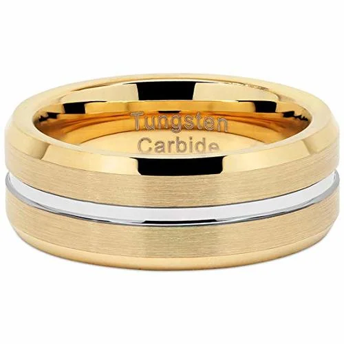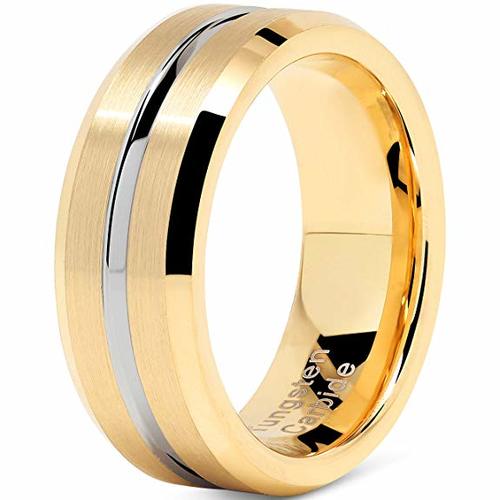 Women's or Men's Tungsten Carbide Wedding Band Matching Rings,14K Yellow Gold Band With Silver Groove High Polish Finish Tungsten Carbide Ring,Beveled Edge With Mens And Womens For Width 6MM 8MM
