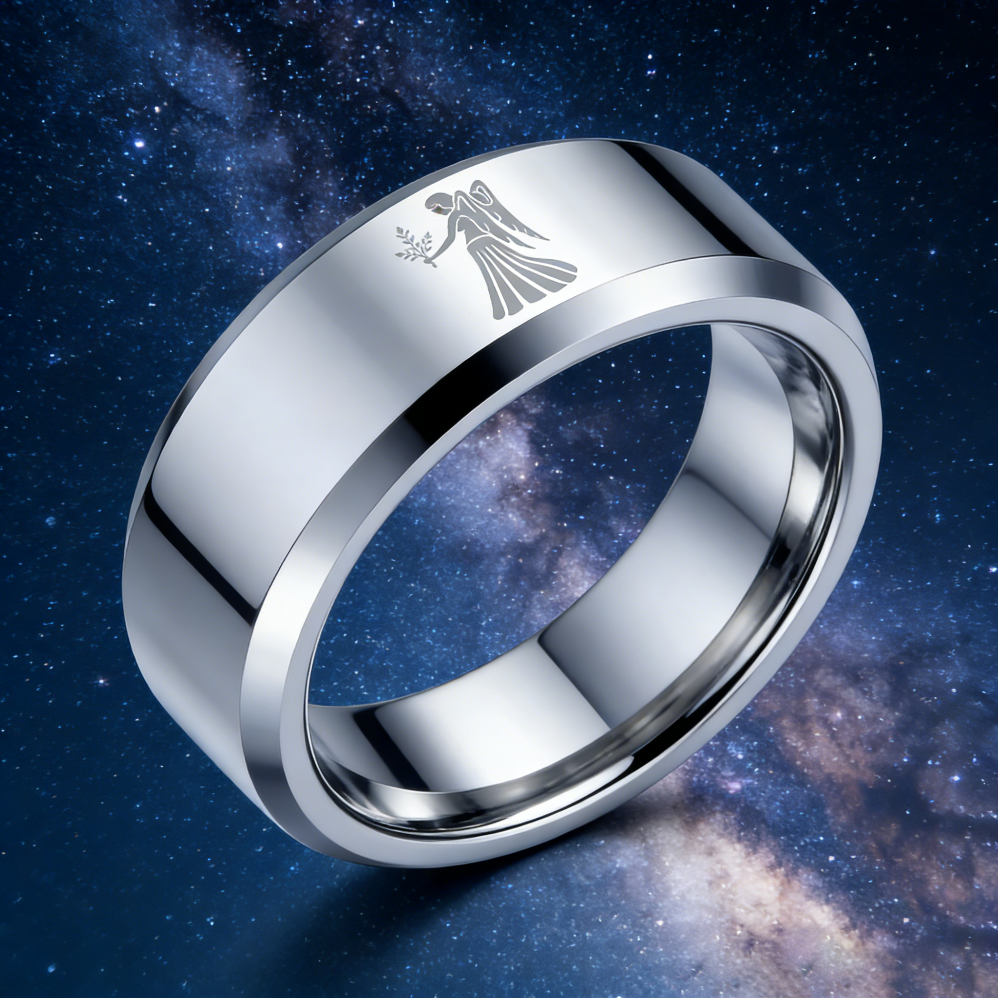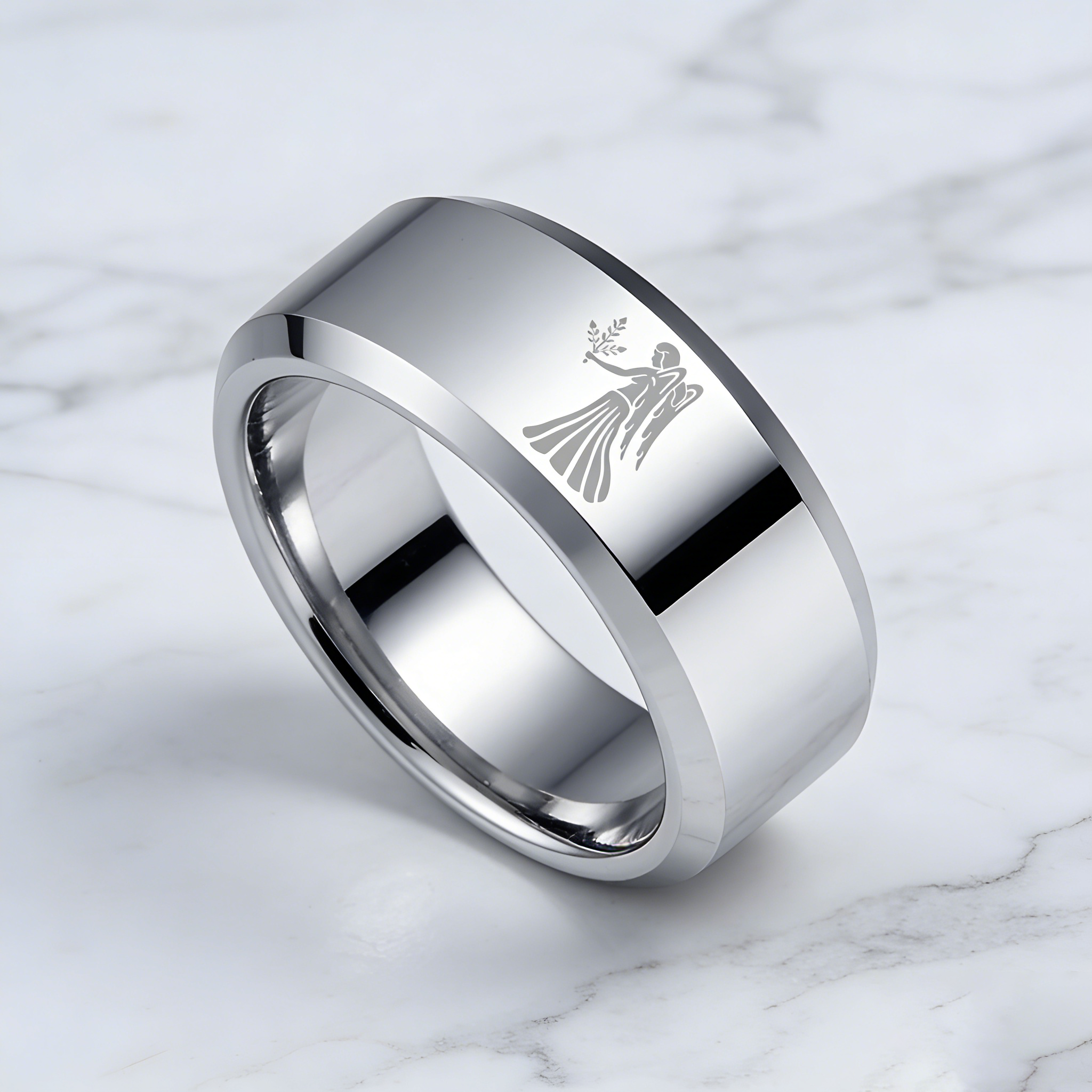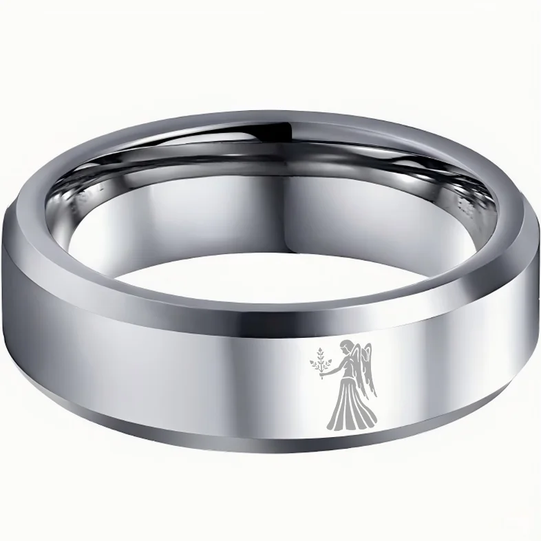 Sliver Virgo Couple Wedding Bands Beveled Edges Sliver Laser Etched Tungsten Carbide Rings 4MM 6MM 8MM