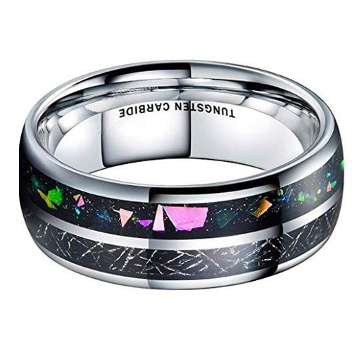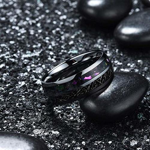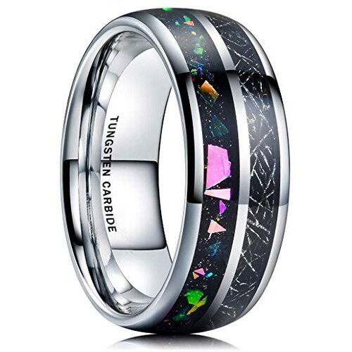 Women's Or Men's Tungsten Carbide Wedding Band Matching Rings,Silver band with Multi Color Rainbow Fragments and Black and Gray Inlay Ring With Mens And Womens For Width 4MM 6MM 8MM 10MM