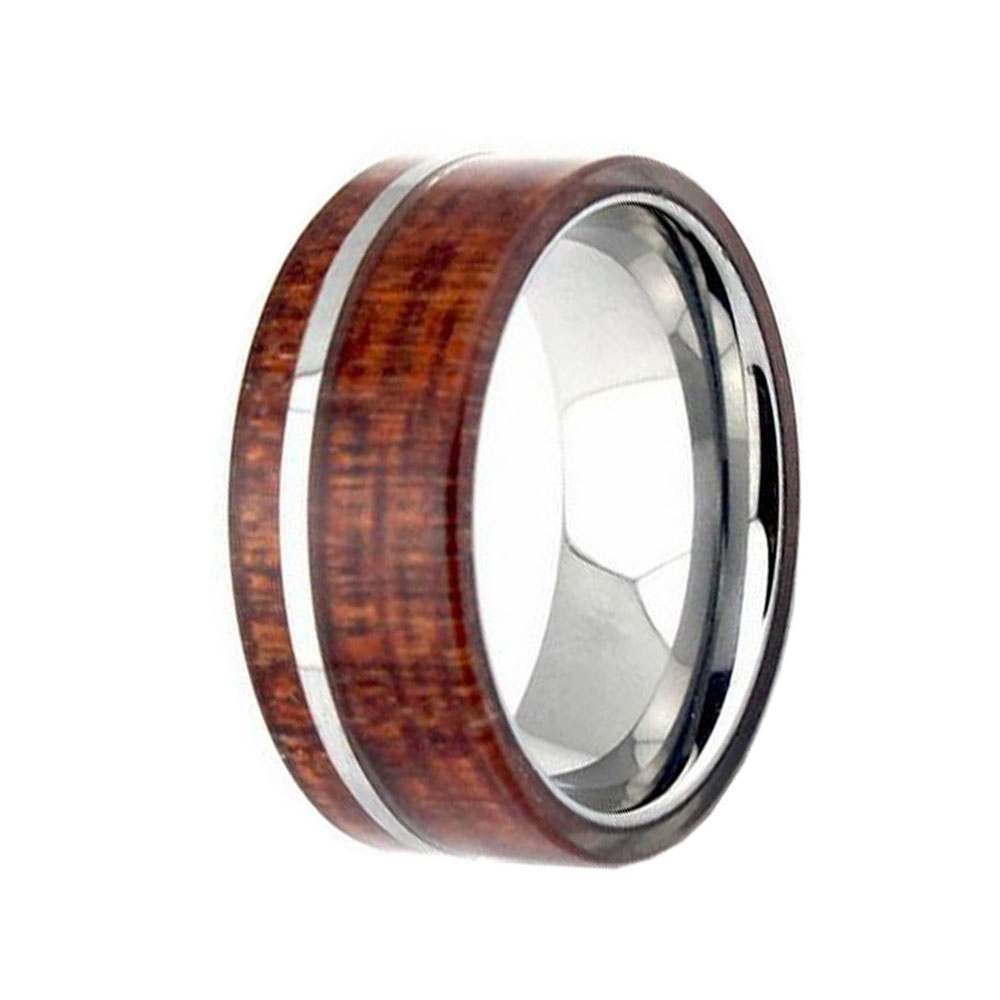 The 8MM flat wood inlay surface with a thin silver line Tungsten Wedding Bands is a stylish and modern choice for a men's wedding band. The wood inlay adds a natural and rustic touch to the ring, while the silver line provides a subtle contrast and adds a touch of elegance. It's important to note that wood inlay rings require a bit of extra care, as they are not as durable as solid tungsten rings. Avoid exposing the tungsten rings for sale to harsh chemicals, excessive moisture, or extreme temperatures to ensure the longevity of the wood inlay.