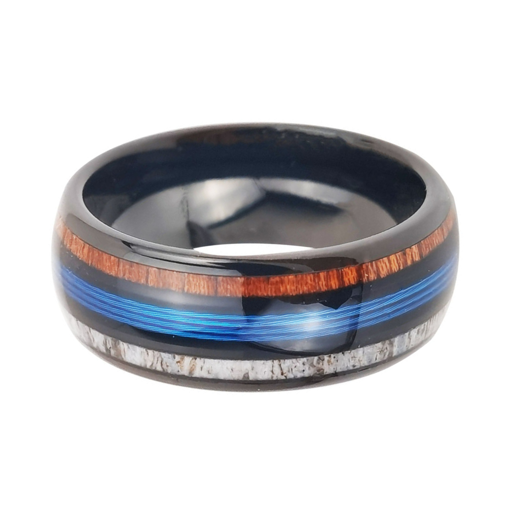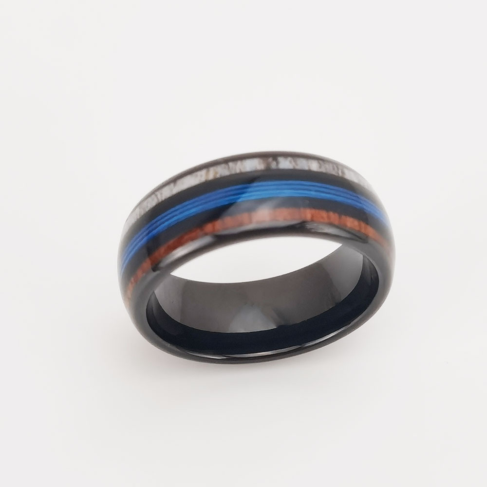 8MM Tungsten Dome Tungsten Carbide Rings with Wood and Opal Inlay Comfort Fit