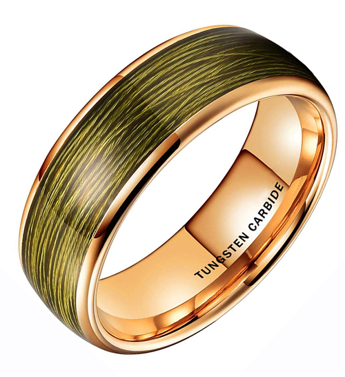 6MM 8MM Women Mens Gold Tungsten Matching Colorful Fragments Inlay Steel Green Wire Inlay Domed Style High Polished Rings
