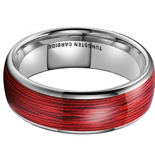 Unique Red Steel Wire inlay with domed shape tungsten carbide, which is an extraordinary wedding ring.