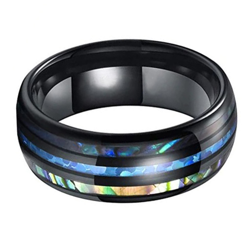 Women's Or Men's Tungsten Carbide Wedding Band Matching Rings,Black Tone Multi Color Inspired Blue Opal and Rainbow Abalone Shell Inlay Ring Organic Colors With Mens And Womens For Width 4MM 6MM 8MM 10MM