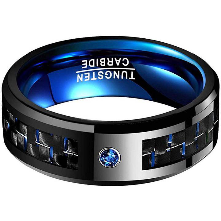 Perfect 4MM 6MM 8MM 10MM width and classic match of black & blue, bring the ring a elegant and fashinable look, sutiable for both men and women. Available in red, blue, black with size ranging from 5-15 (include half size). Carbon Fiber Couple Wedding Band Beveled Edge Comfort Fit Womens Mens Ring