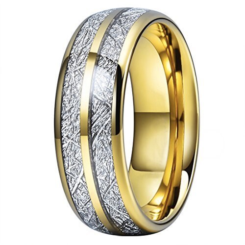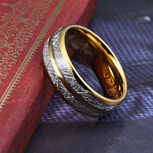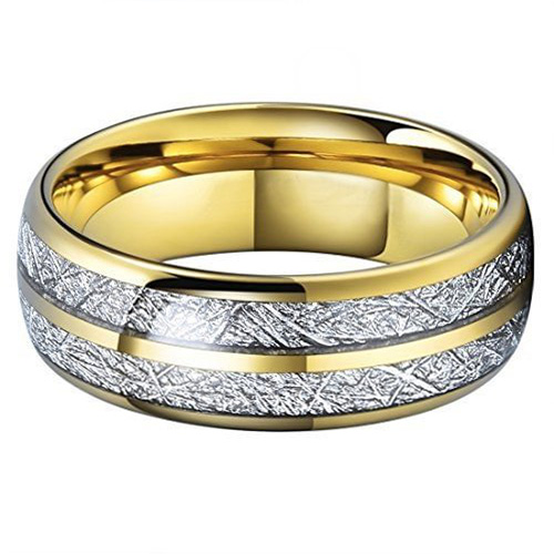 Men's Or Women's Tungsten Carbide Wedding Band Matching Rings,Yellow Gold Double Line Inspired Meteorite Domed Tungsten Carbide Ring With Mens And Womens For Width 4MM 6MM 8MM 10MM