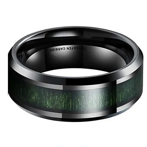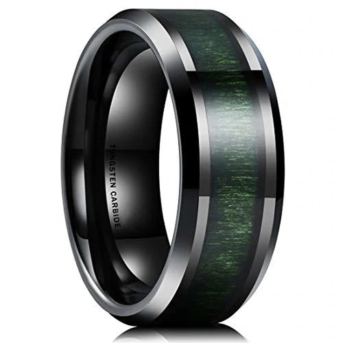 Women's Or Men's Tungsten Carbide Wedding Band Matching Rings,Black with High Polish Green Wood Inlay and Beveled Edges Ring With Mens And Womens For Width 4MM 6MM 8MM 10MM