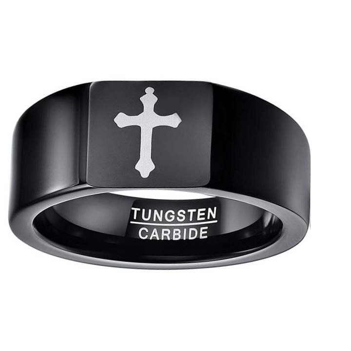 6MM 8MM 10MM Men Women Vintage Black Tungsten Carbide Couple Jesus Celtic Cross Wedding Bands Flat Top Comfort Fit