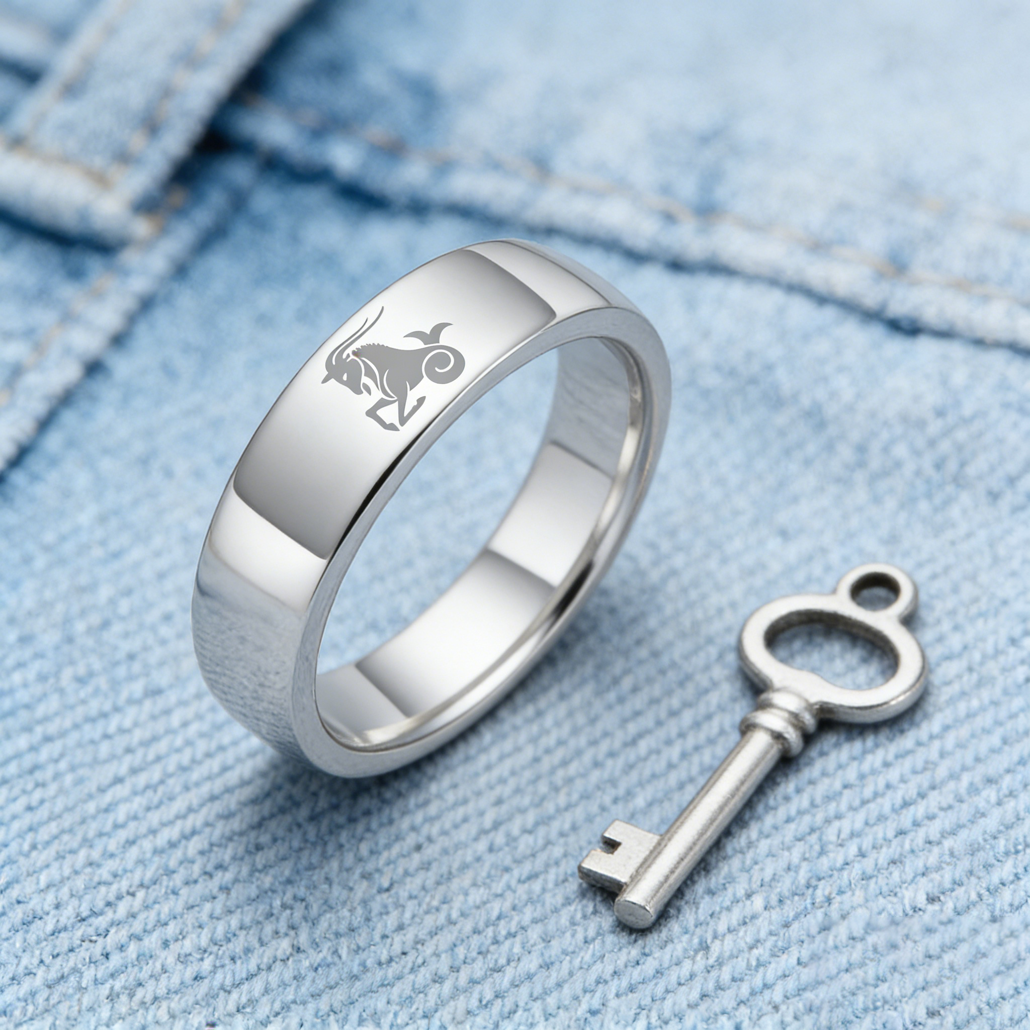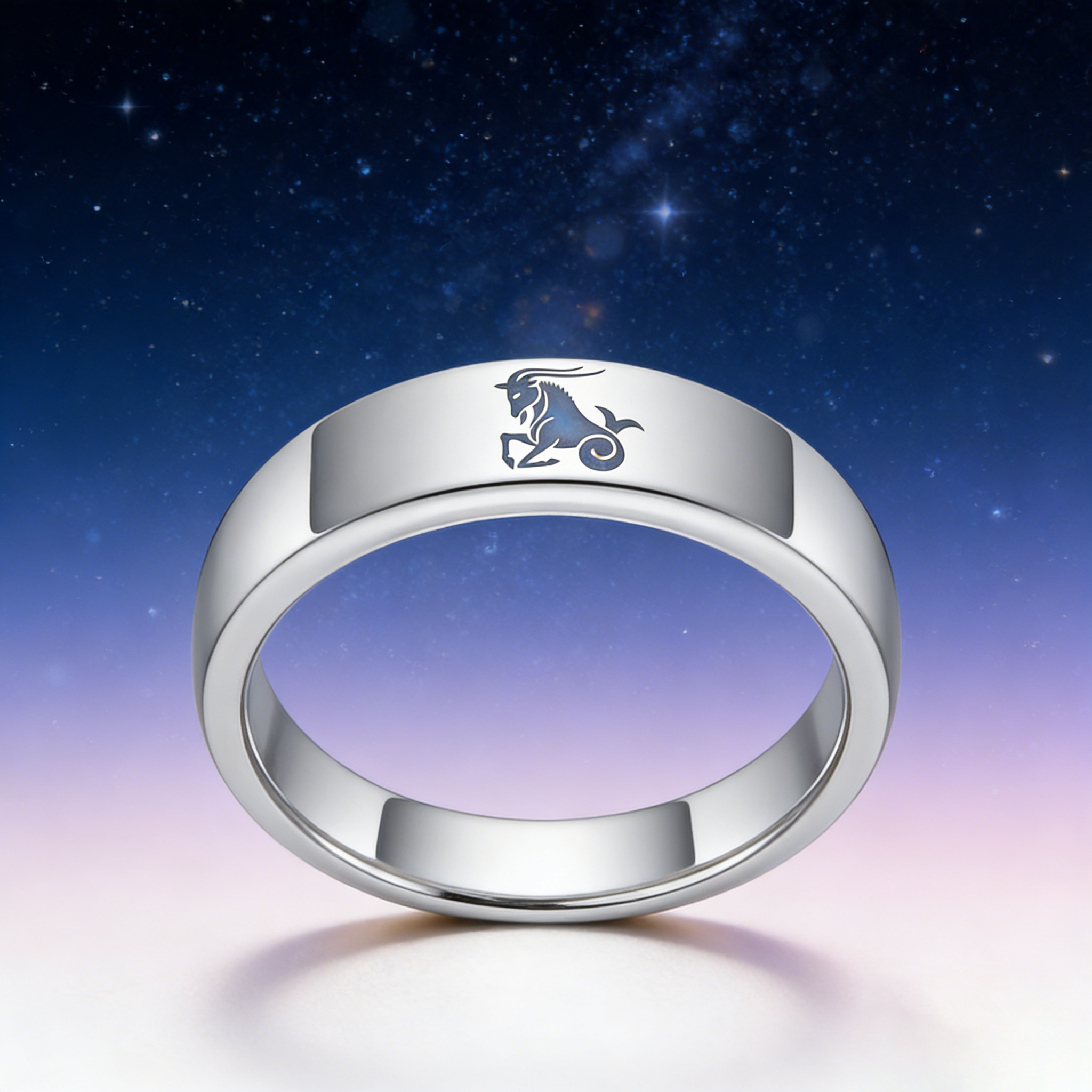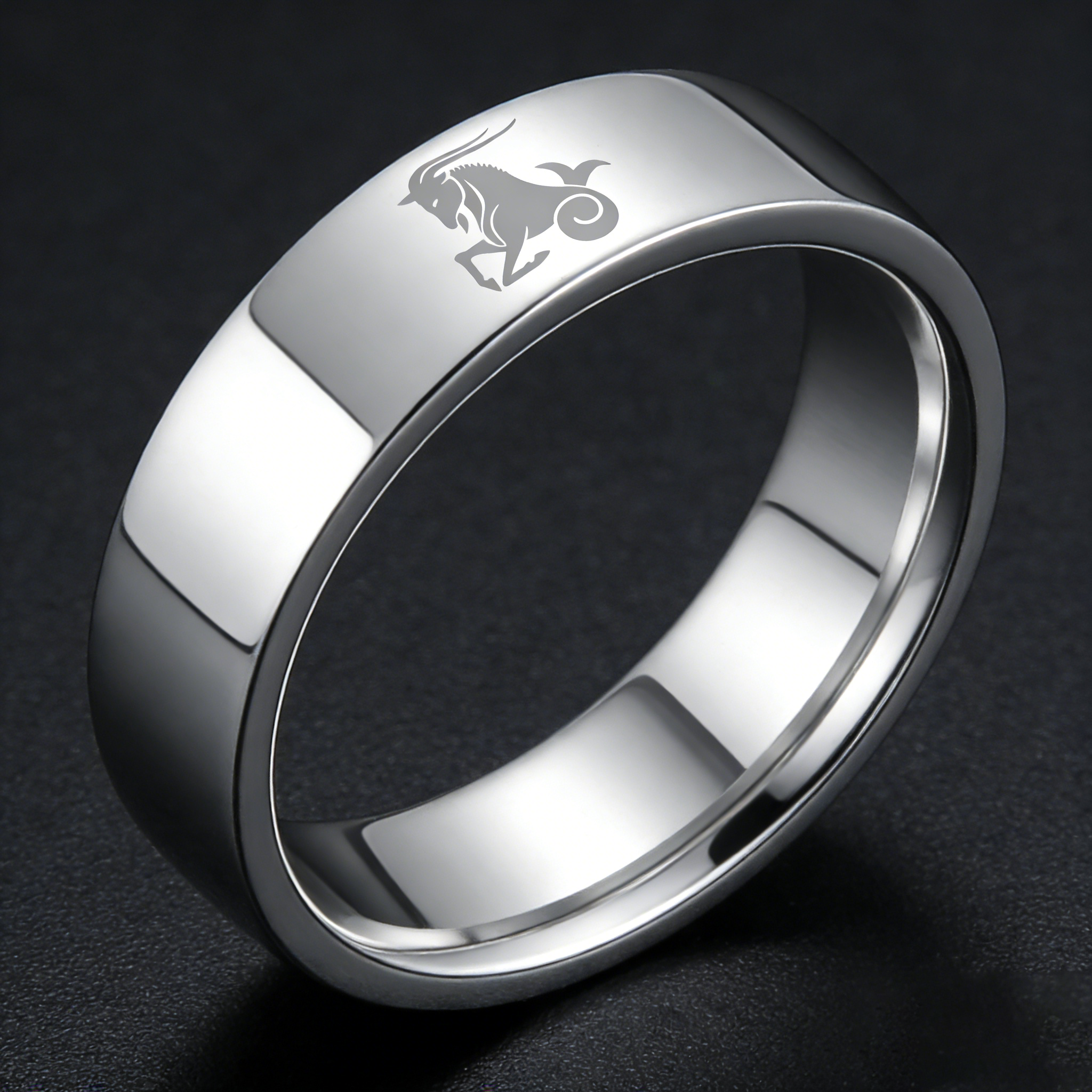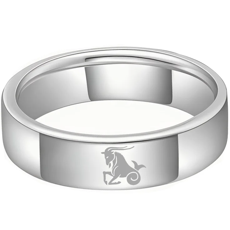 Men Women Sliver Capricorn Tungsten Carbide Rings Couple Wedding Band Flat Comfort Fit 4MM 6MM 8MM Width
