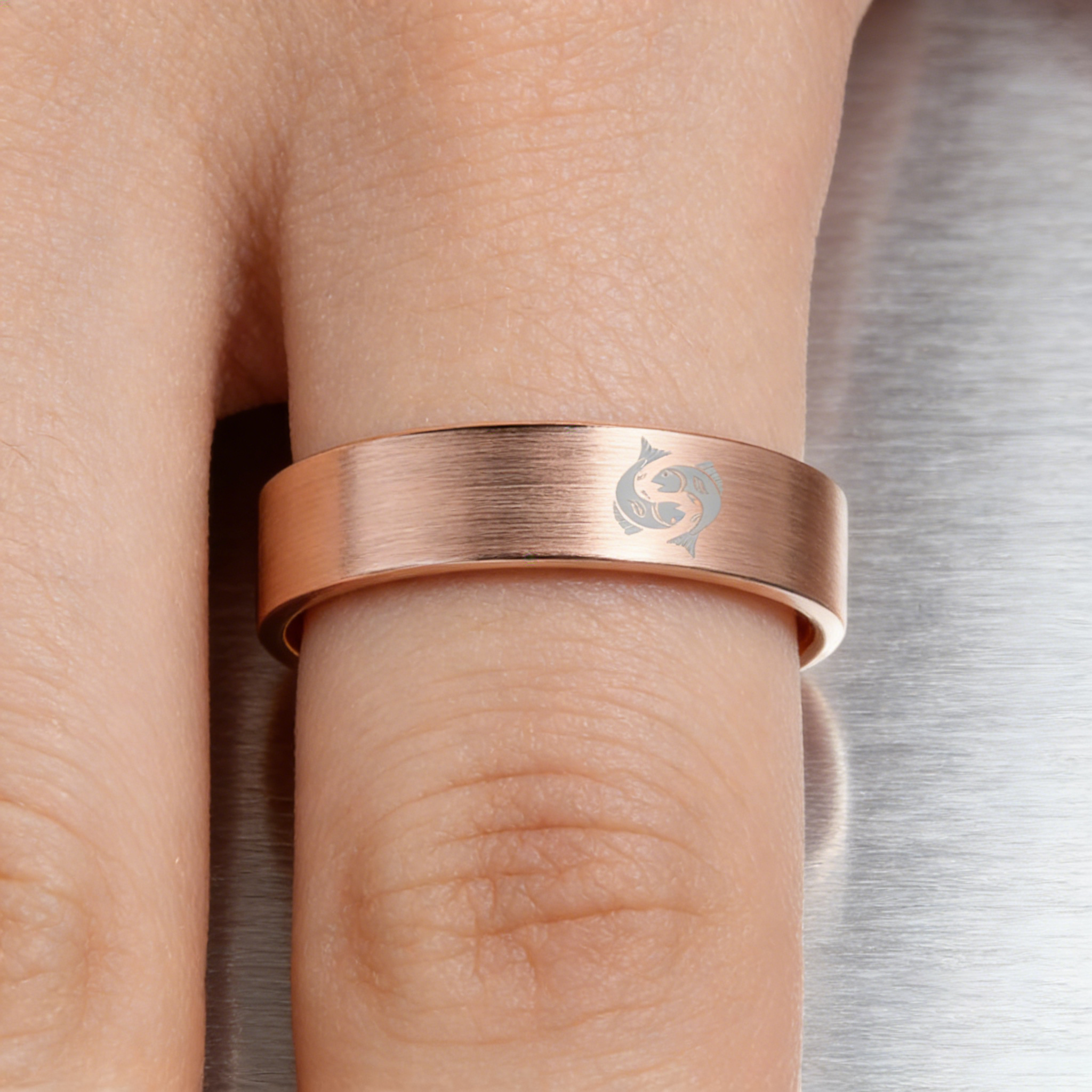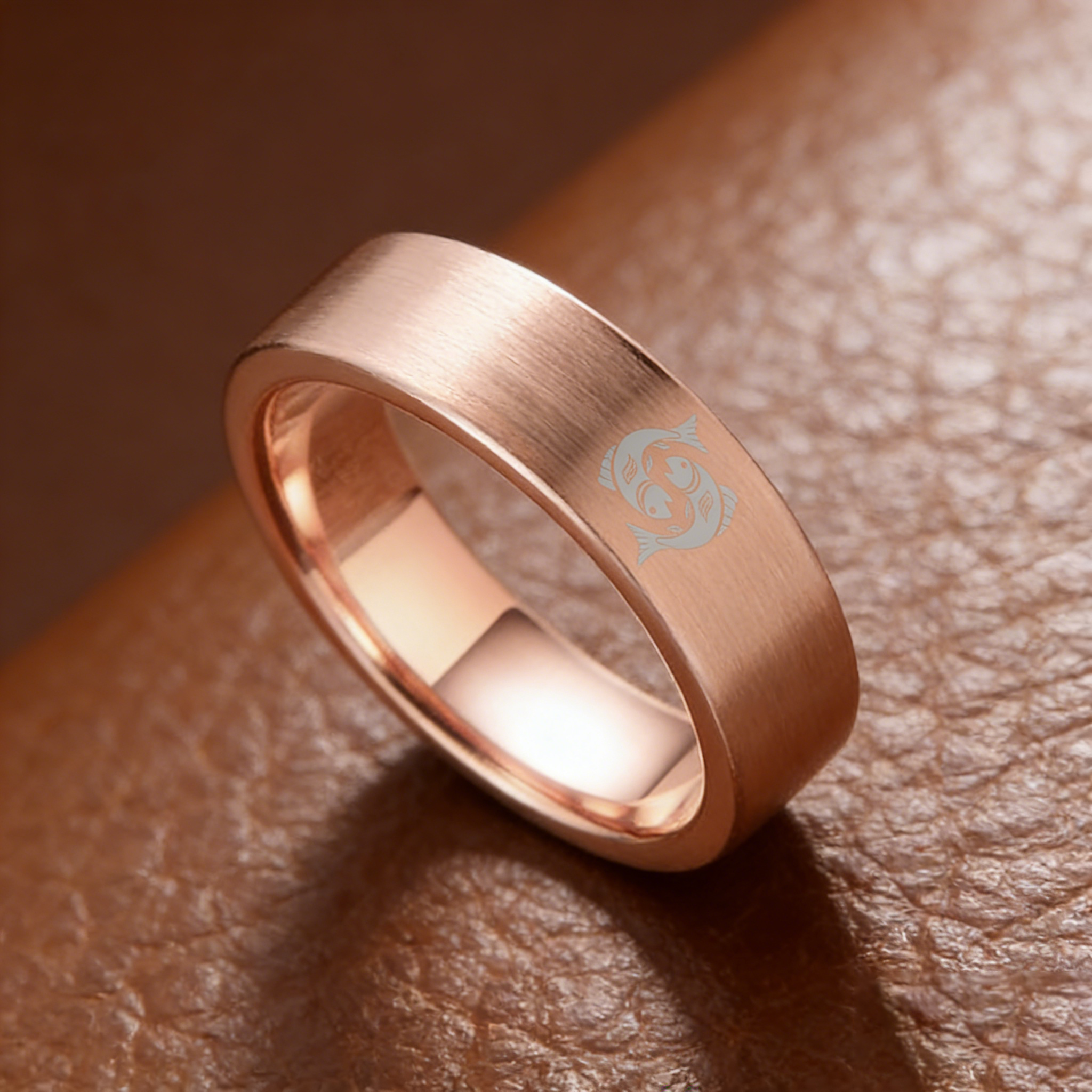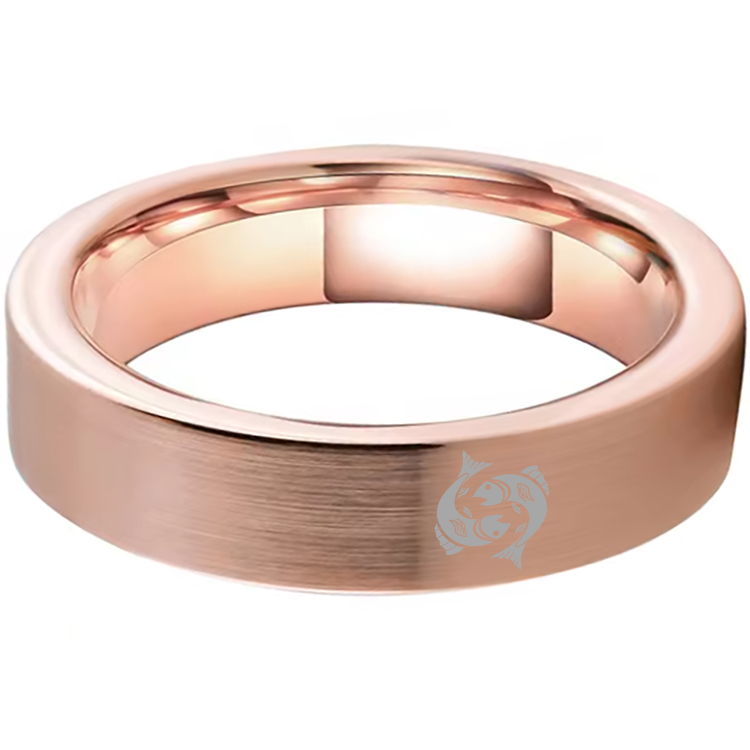 Pisces Tungsten Carbide Rings Rose Gold Flat Wedding Bands Comfort Fit Mens and Womens 4MM 6MM 8MM