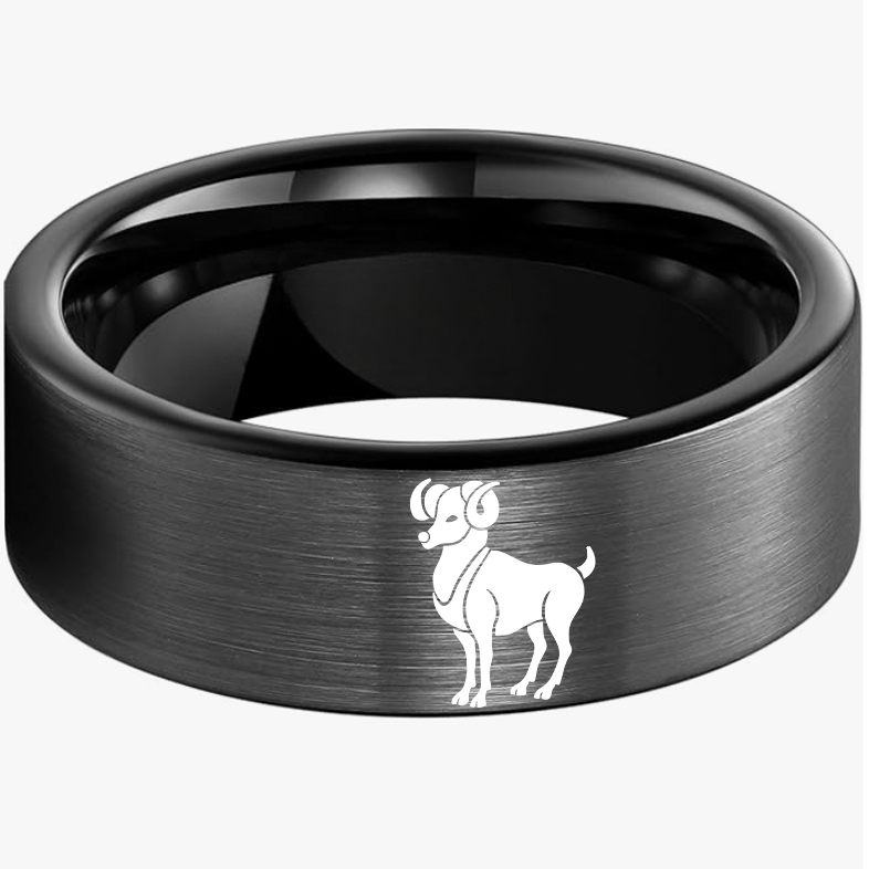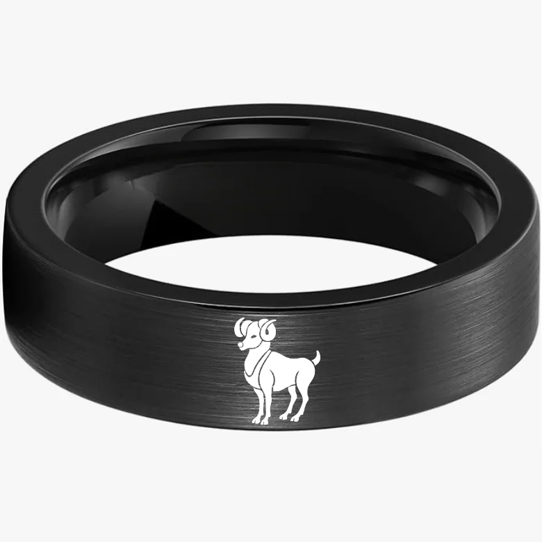 Flat Aries Tungsten Wedding Bands Tungsten Rings Black Comfort fit for Women or Men 4MM 6MM 8MM