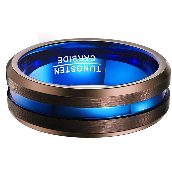 The Mens Women Brown Brushed Tungsten Carbide Ring Matching with Blue Plated Groove is a stylish and modern choice for couples who want matching wedding bands with a unique and eye-catching design. The blue wedding bands features a brown brushed tungsten carbide band with a blue plated groove in the center, creating a bold and contemporary look that is perfect for couples who want to make a statement.