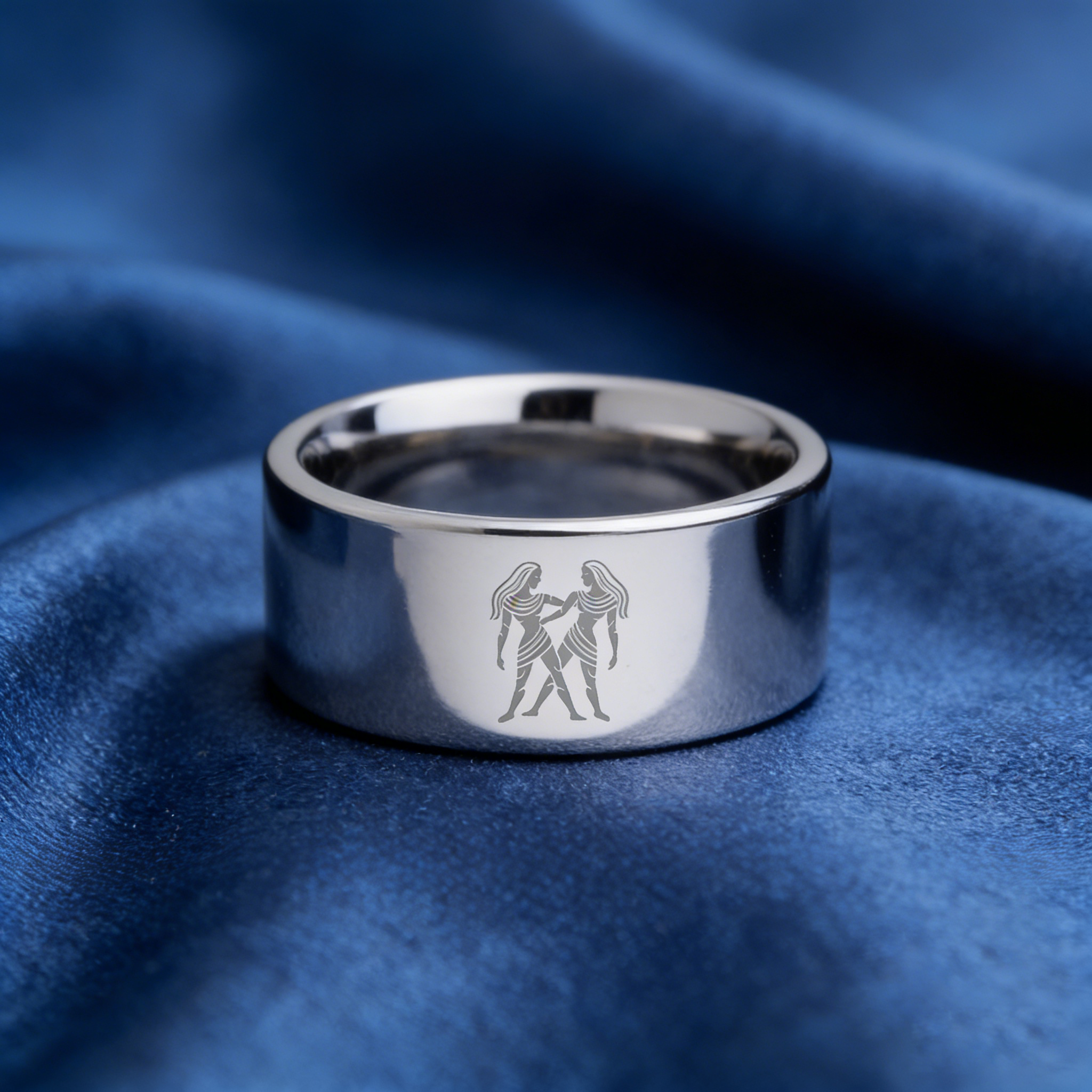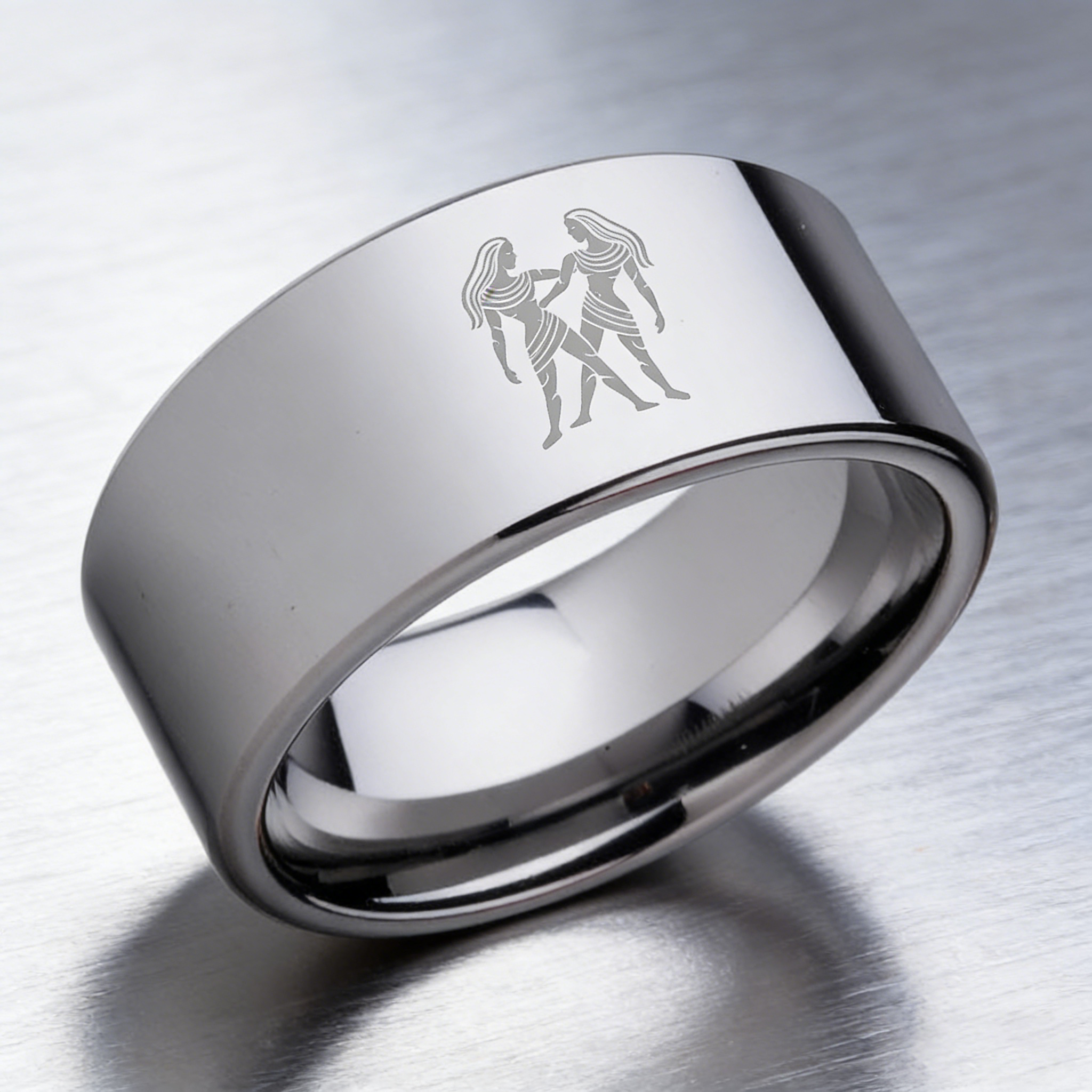4MM 6MM 8MM 10MM Silver Flat Tungsten Carbide Rings Zodiac Gemini Laser Mens Womens Wedding Bands Comfort Fit