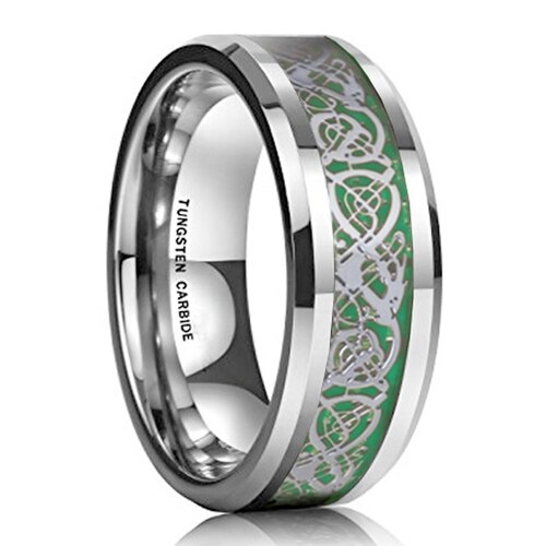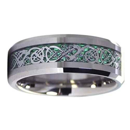 4MM 6MM 8MM 10MM Women Or Men's Tungsten Carbide Celtic Dragon Knot Wedding Band Rings, Tungsten Silver Resin Inlay Green Celtic Knot Ring With Mens And Womens