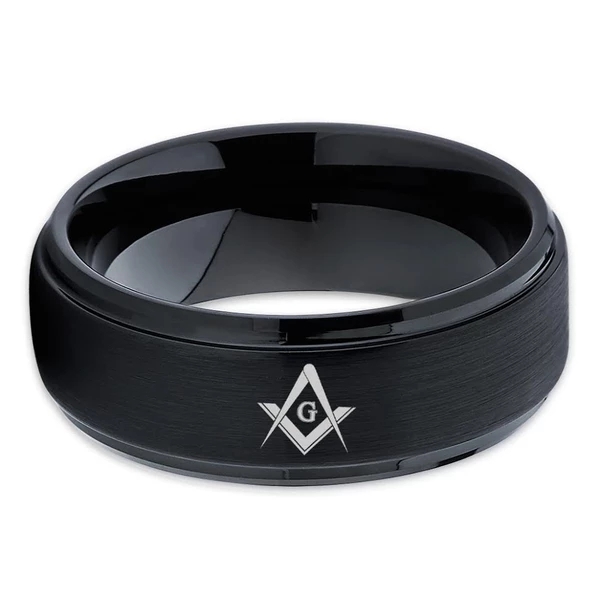 The Women's or Men's Tungsten Carbide Masonic Wedding Band - Black Brush Polish Tungsten Rings is a stylish and modern option for couples who want a wedding band set that reflects their Masonic beliefs and values. The black wedding rings is made from tungsten carbide, which is known for its durability, scratch resistance, and overall strength.