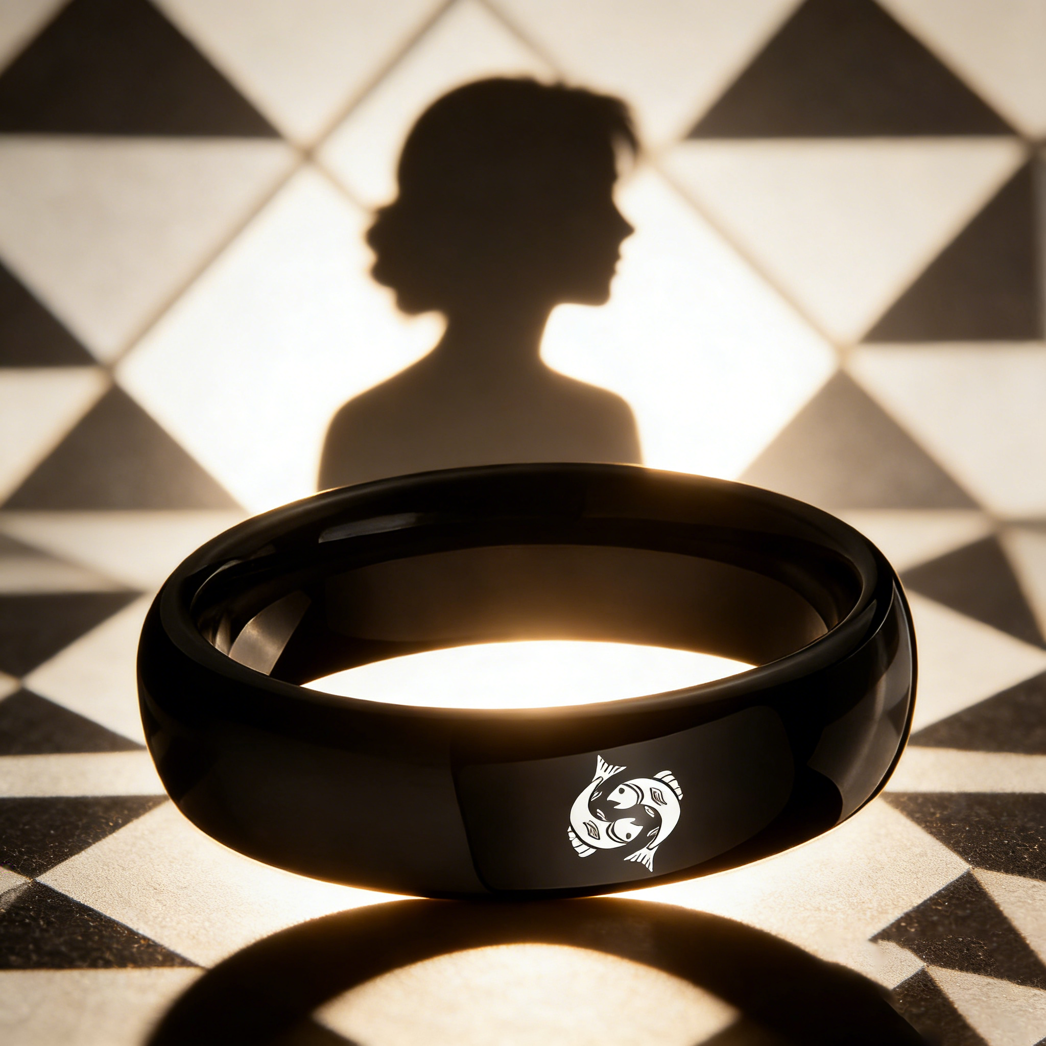 4MM 6MM 8MM Black Pisces Tungsten Carbide Rings Prints Laser Design Domed Top Tungsten Wedding Band