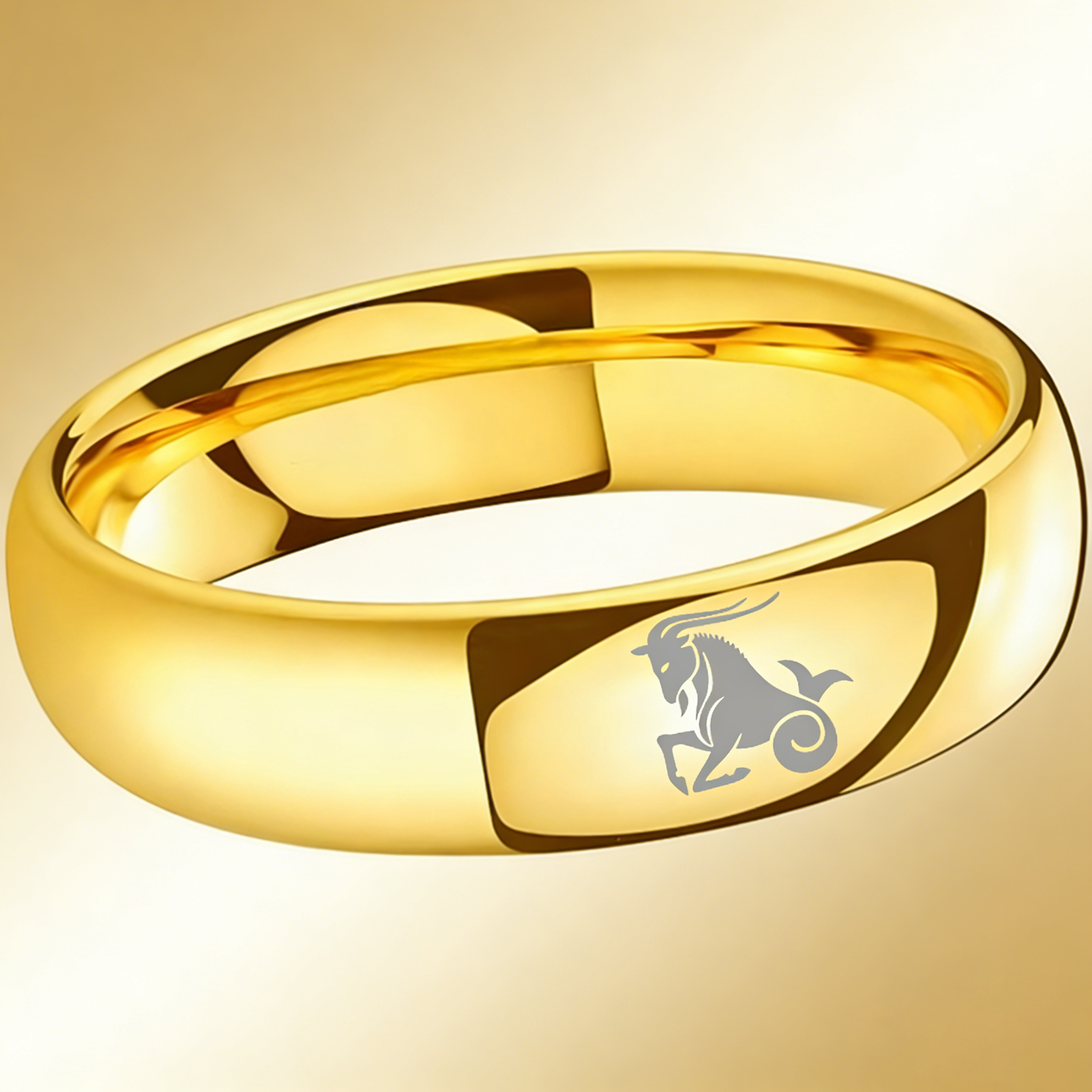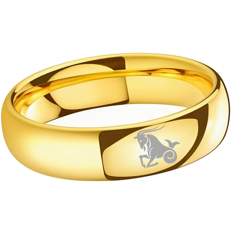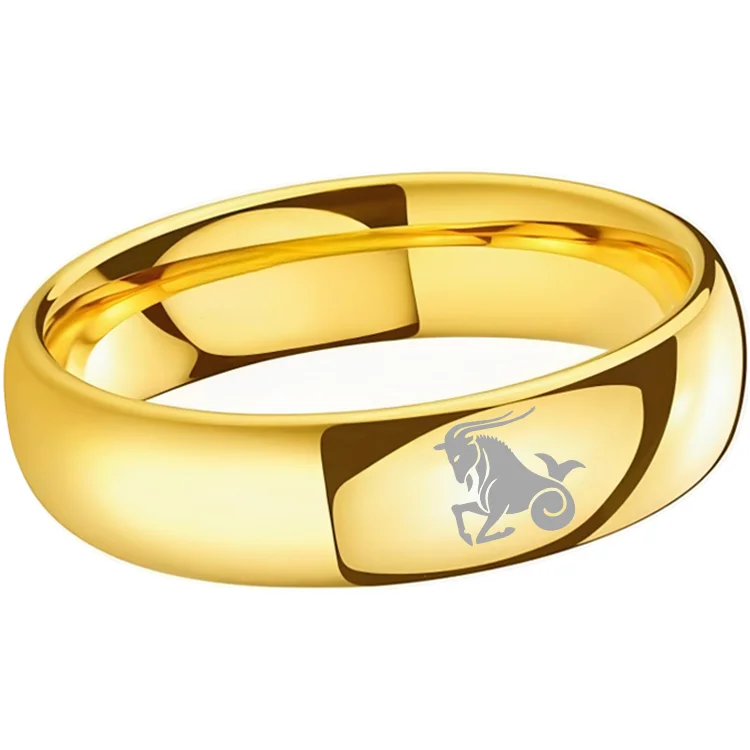 4MM 6MM 8MM Gold Capricorn Tungsten Carbide Rings Prints Laser Design Domed Top Tungsten Wedding Bands