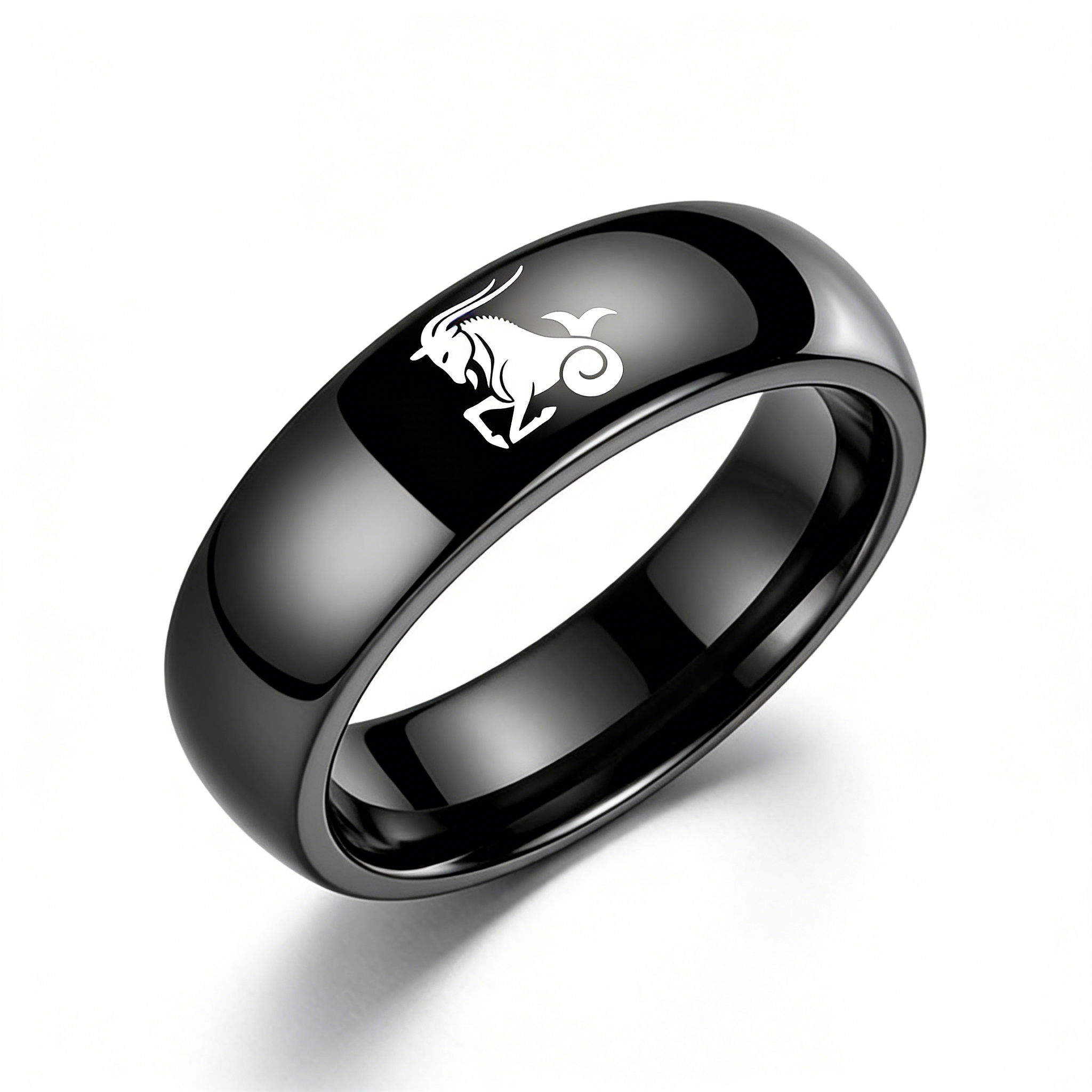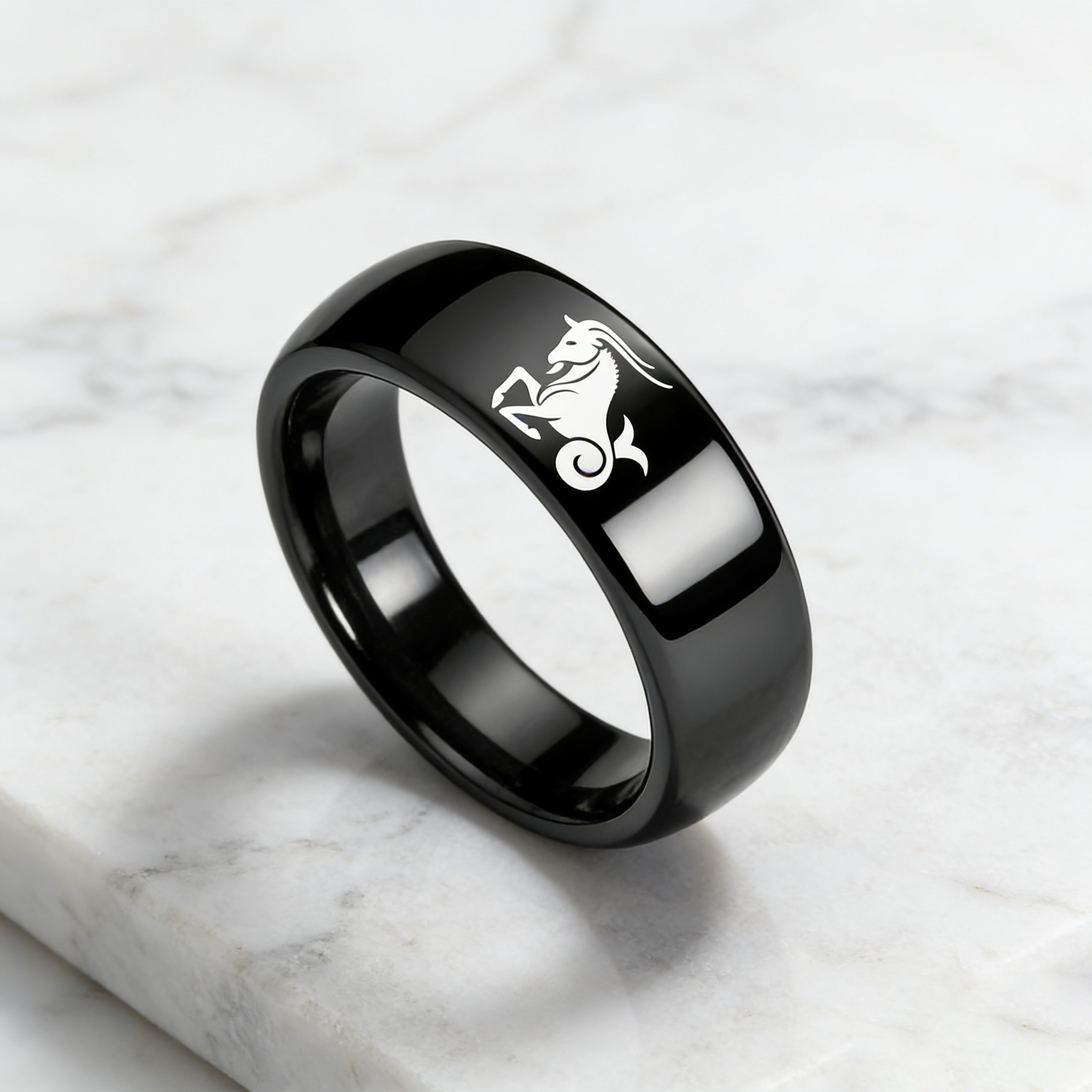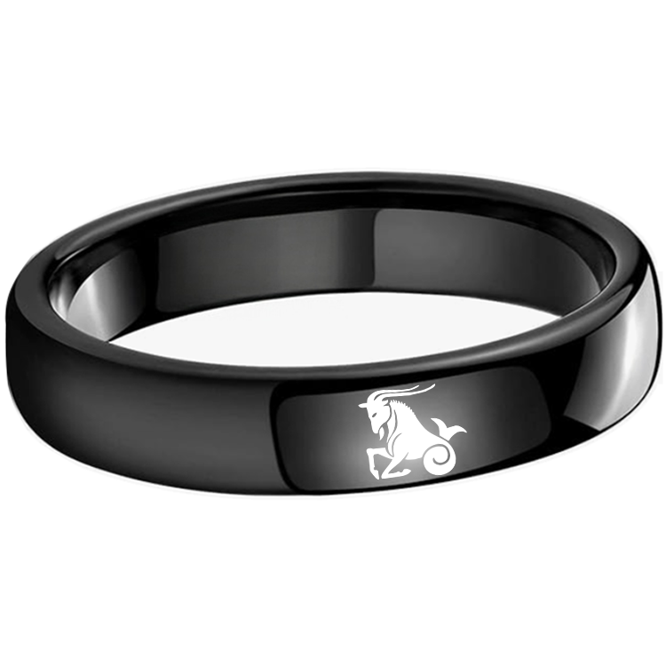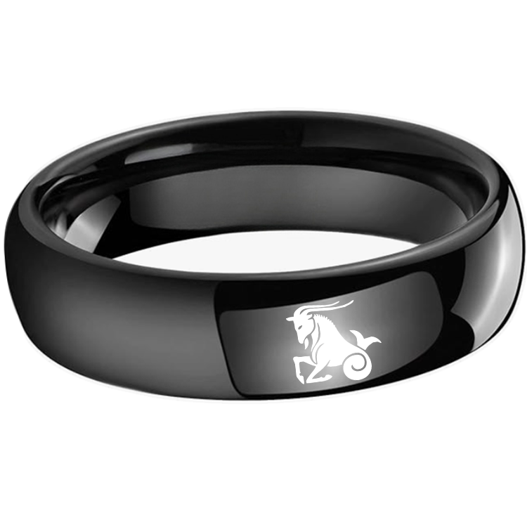 4MM 6MM 8MM Width Black Capricorn Tungsten Carbide Rings Prints Laser Design Domed Top Tungsten Wedding Band