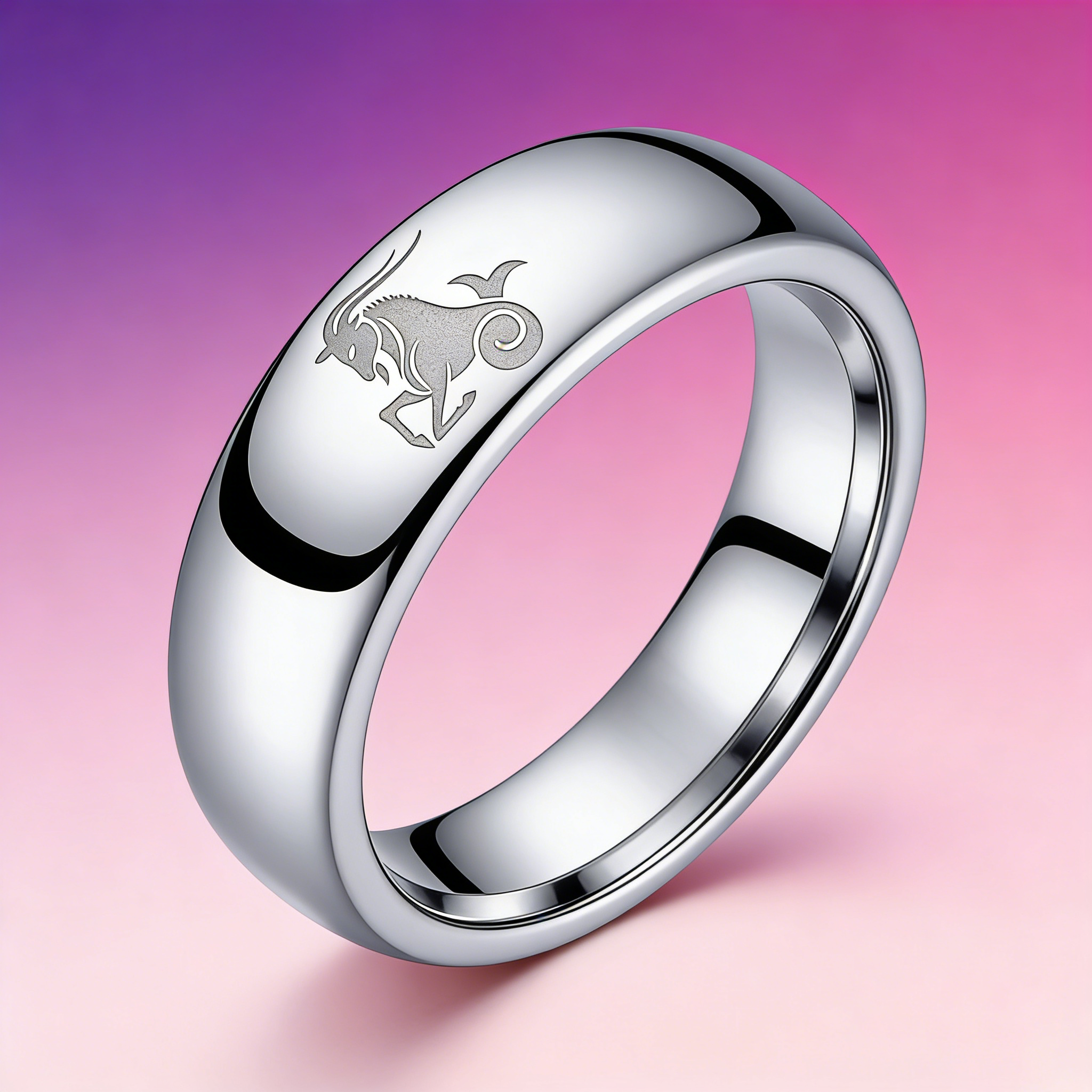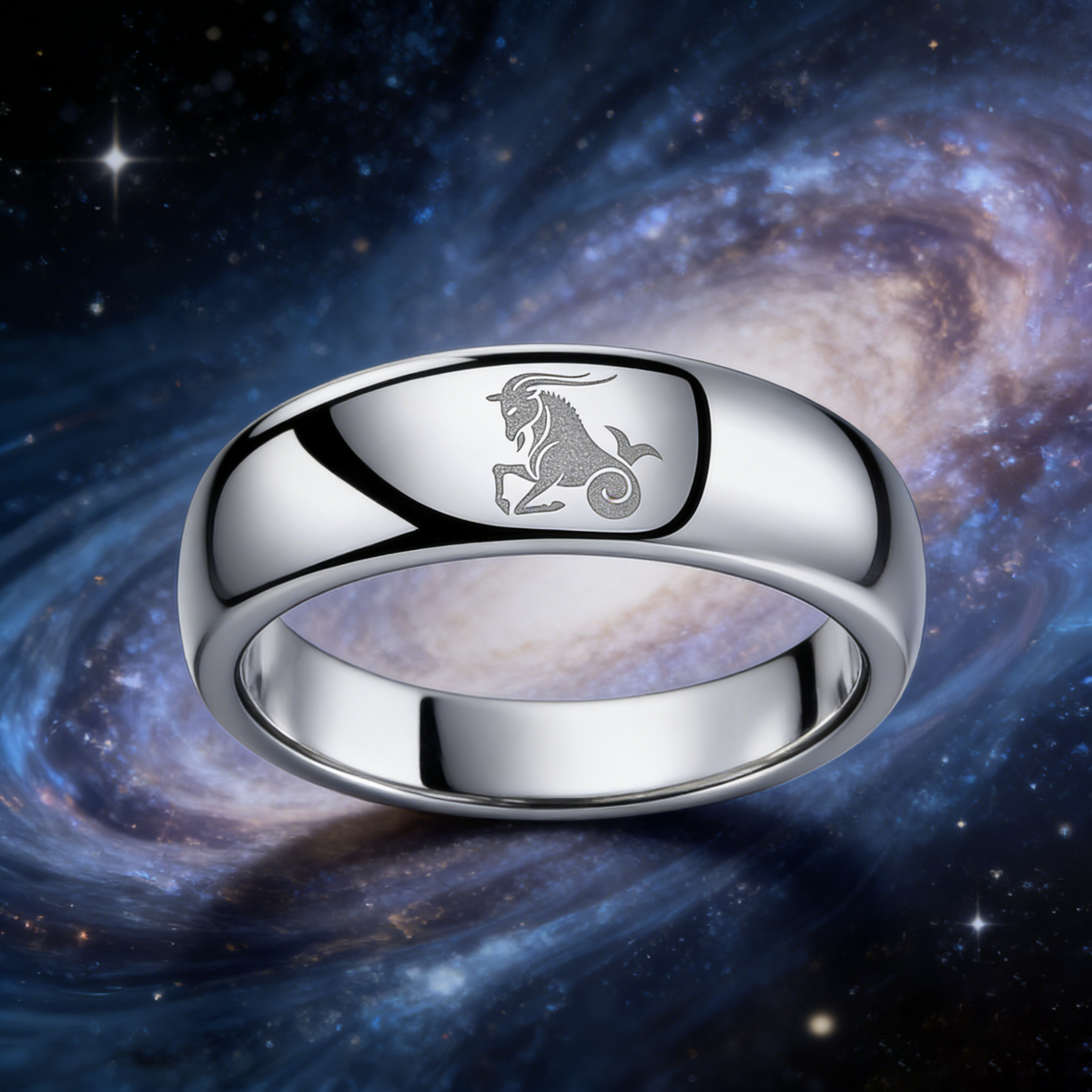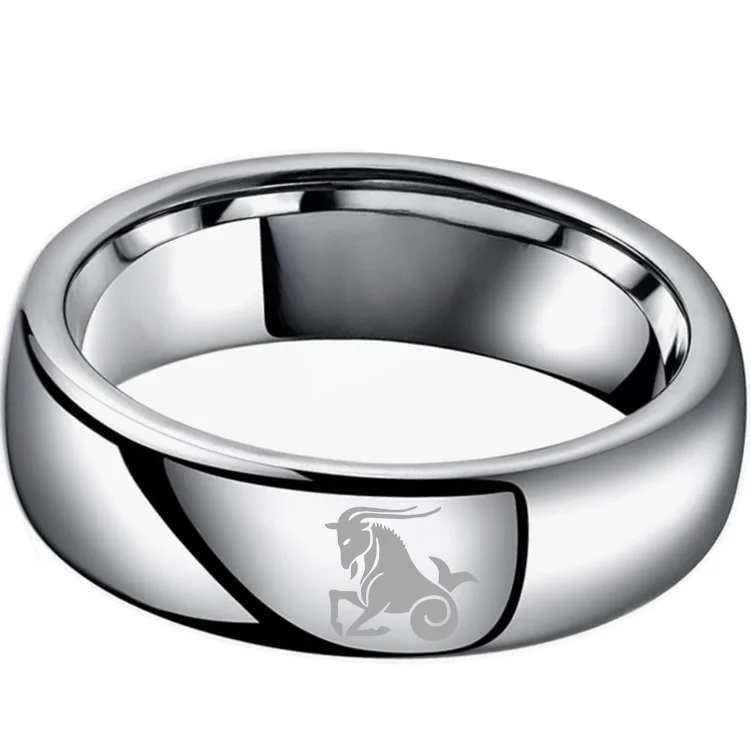 4MM 6MM 8MM Width Sliver Capricorn Tungsten Carbide Rings Prints Laser Design Domed Top Tungsten Wedding Bands