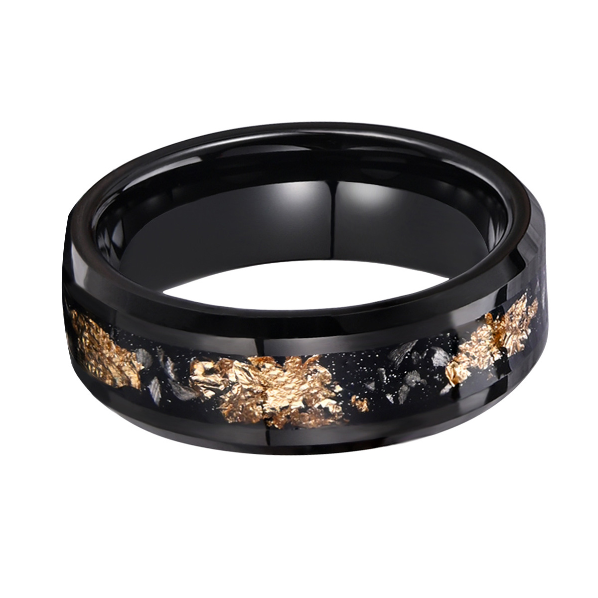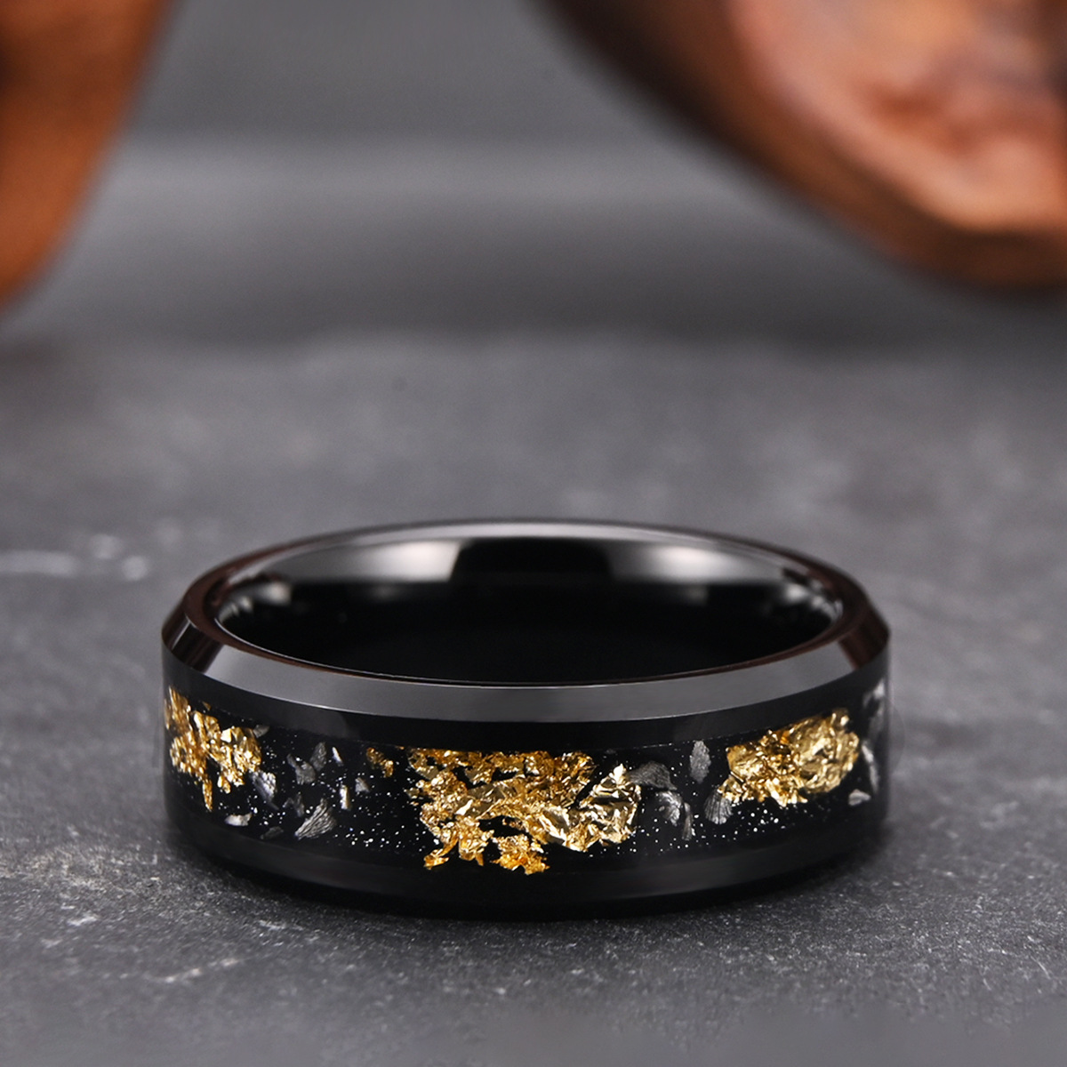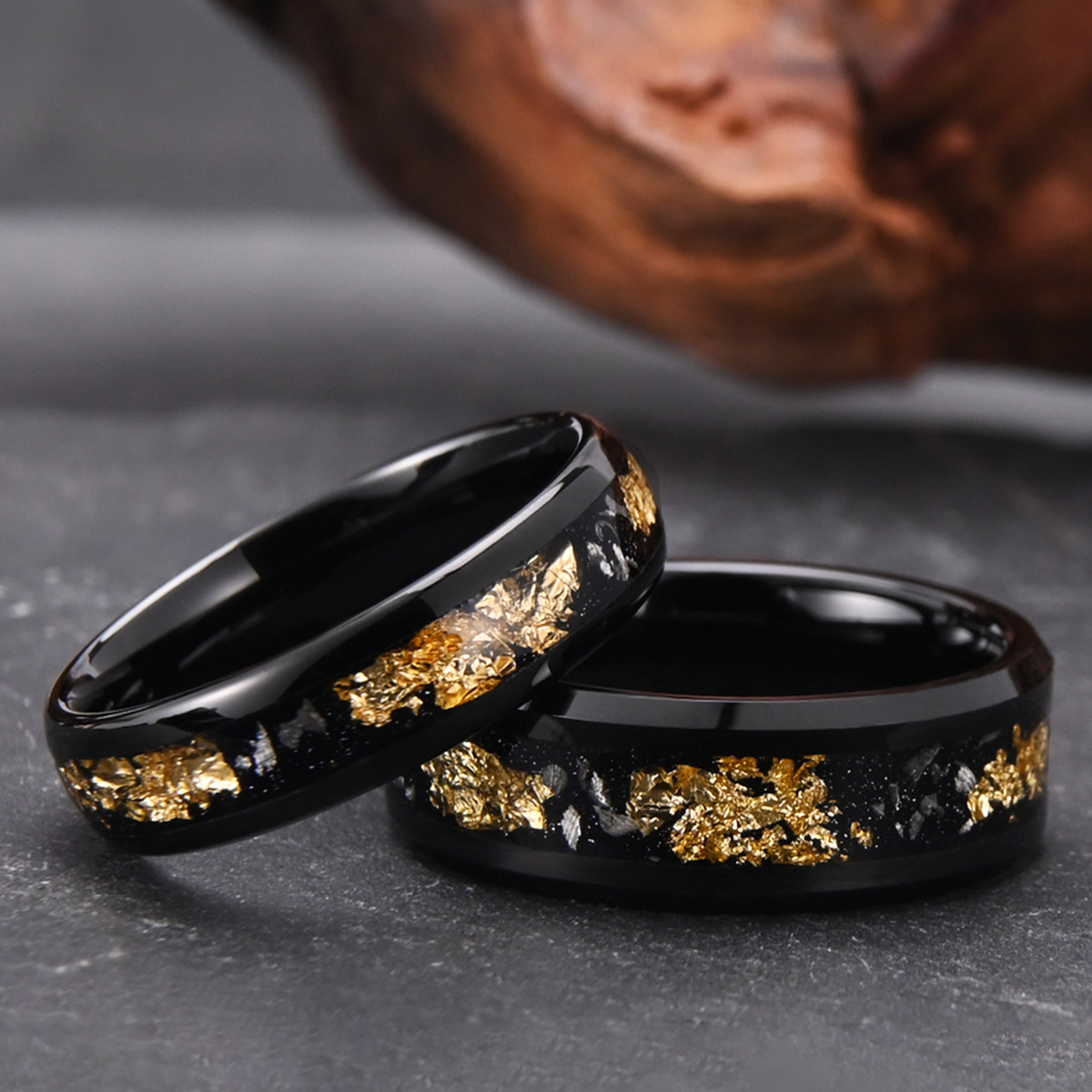 6MM 8MM Black Tungsten Carbide RingInlaid with Gold Foil Couple Rings Mens Womens Wedding Bands Comfort Fit
