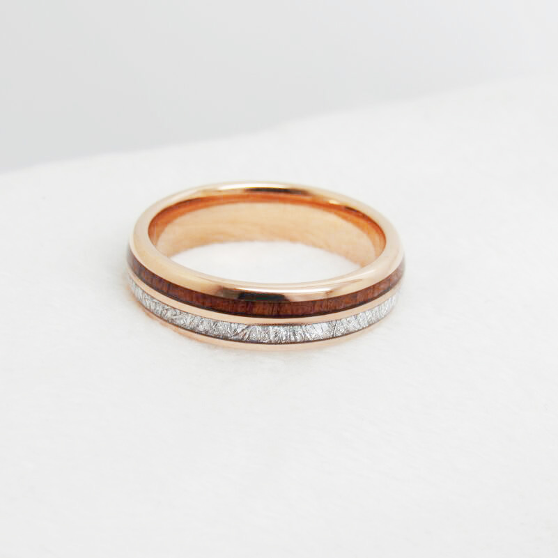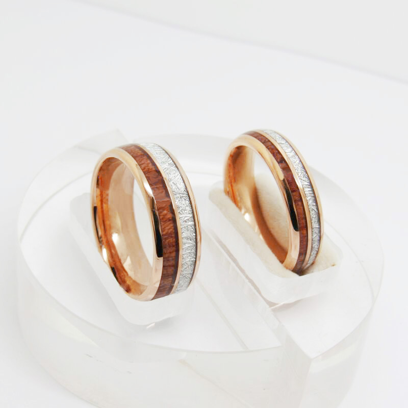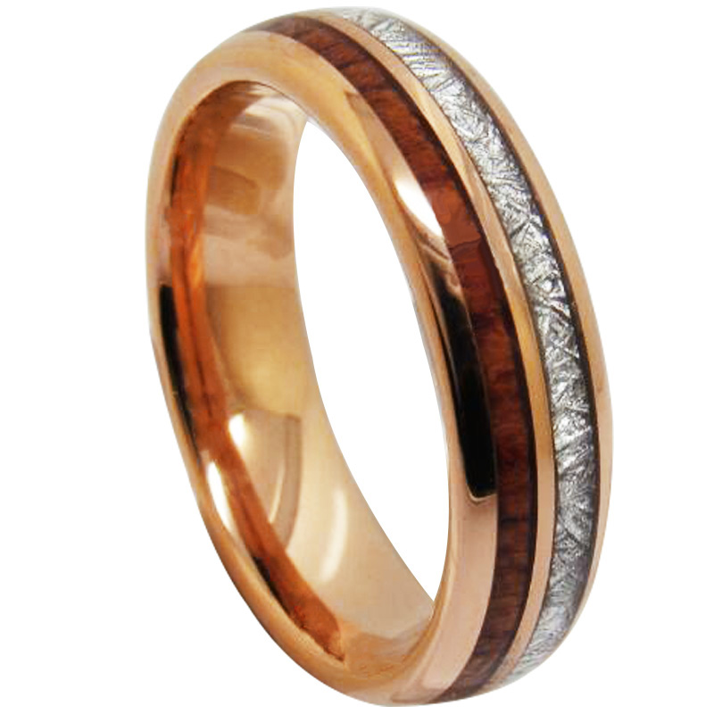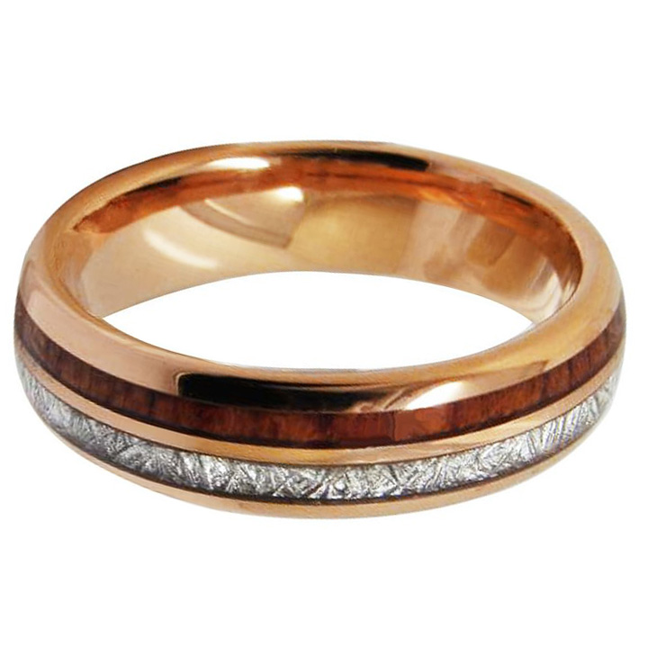 6MM 8MM Full Arc Electric Rose Gold Tungsten Wedding Rings Inlaid Mahogany And Silver Thread