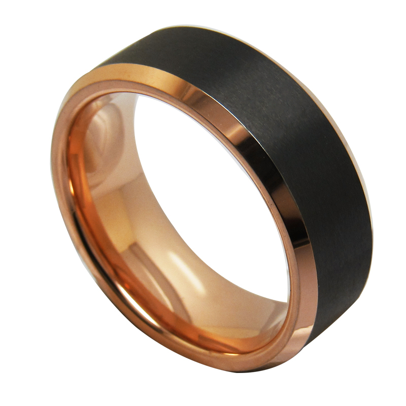 6MM 8MM Mens Black Tungsten Carbide Chamfered And Inner Rings Electric Rose Gold Faceted