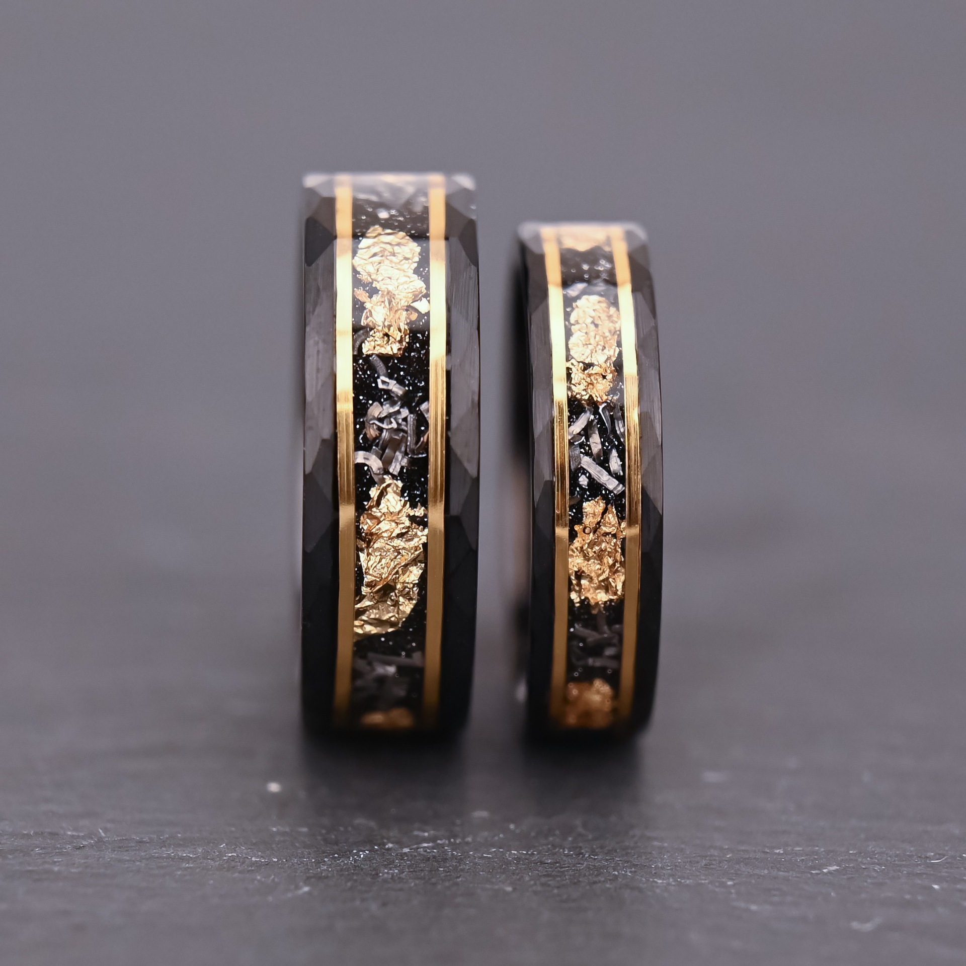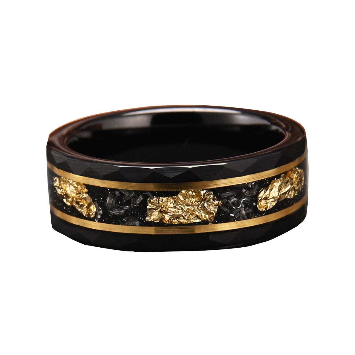 6MM 8MM Tungsten Carbide Wedding Rings Meteorite-set Gold Plate Flat Hammered Electrode Black Ring For Women And Men