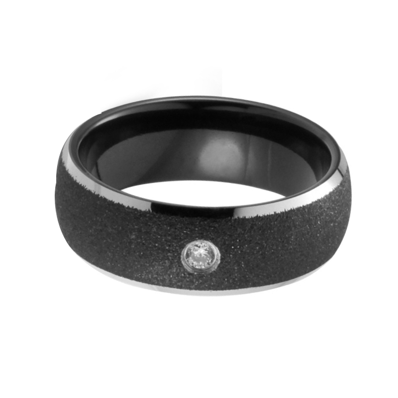 6MM 8MM Women's Or Men's Black Tungsten Carbide Wedding Rings CZ Inlay