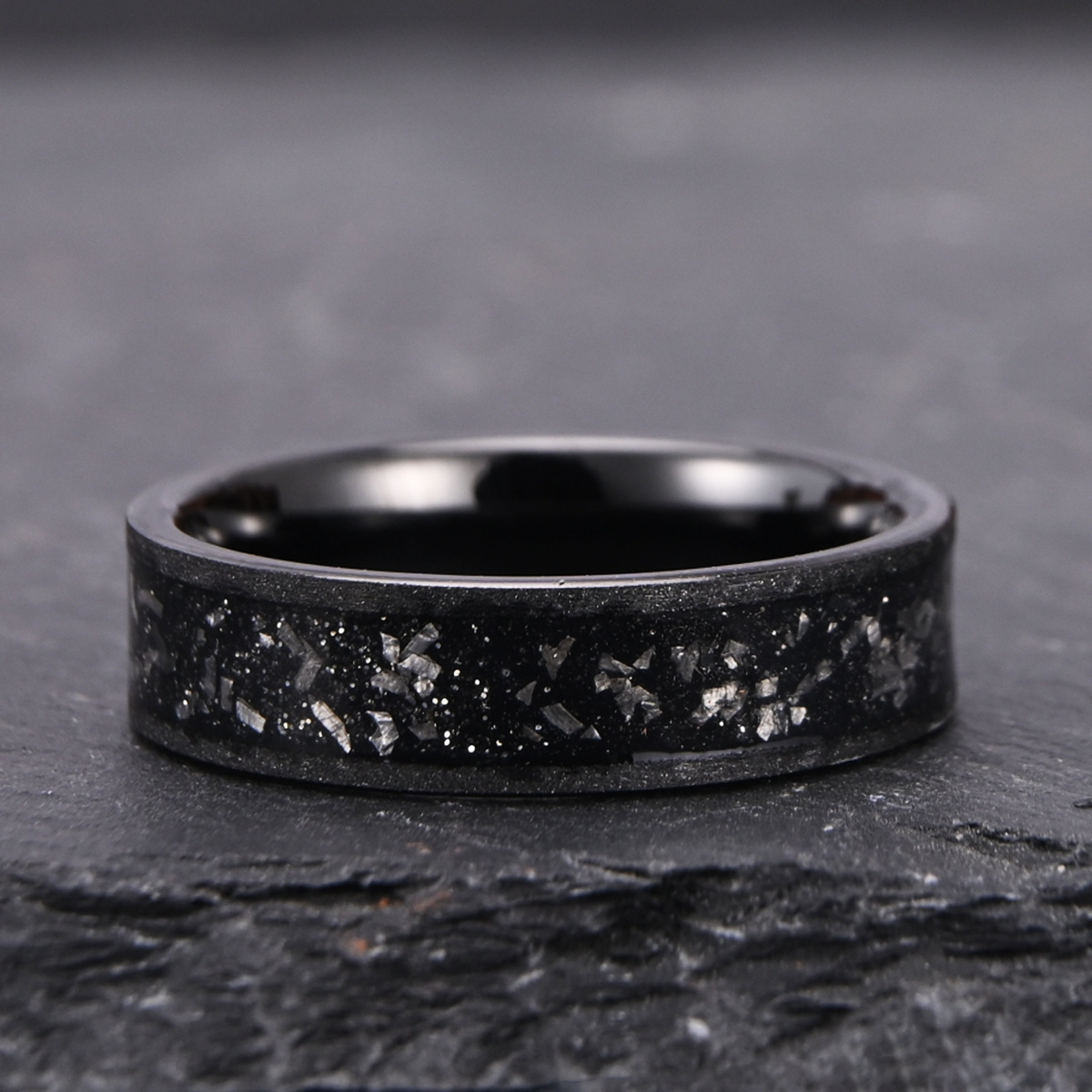 6MM Couple Tungsten Carbide Rings Mens Womens Meteorite-set Electroplated Black Sandblasted Wedding Bands