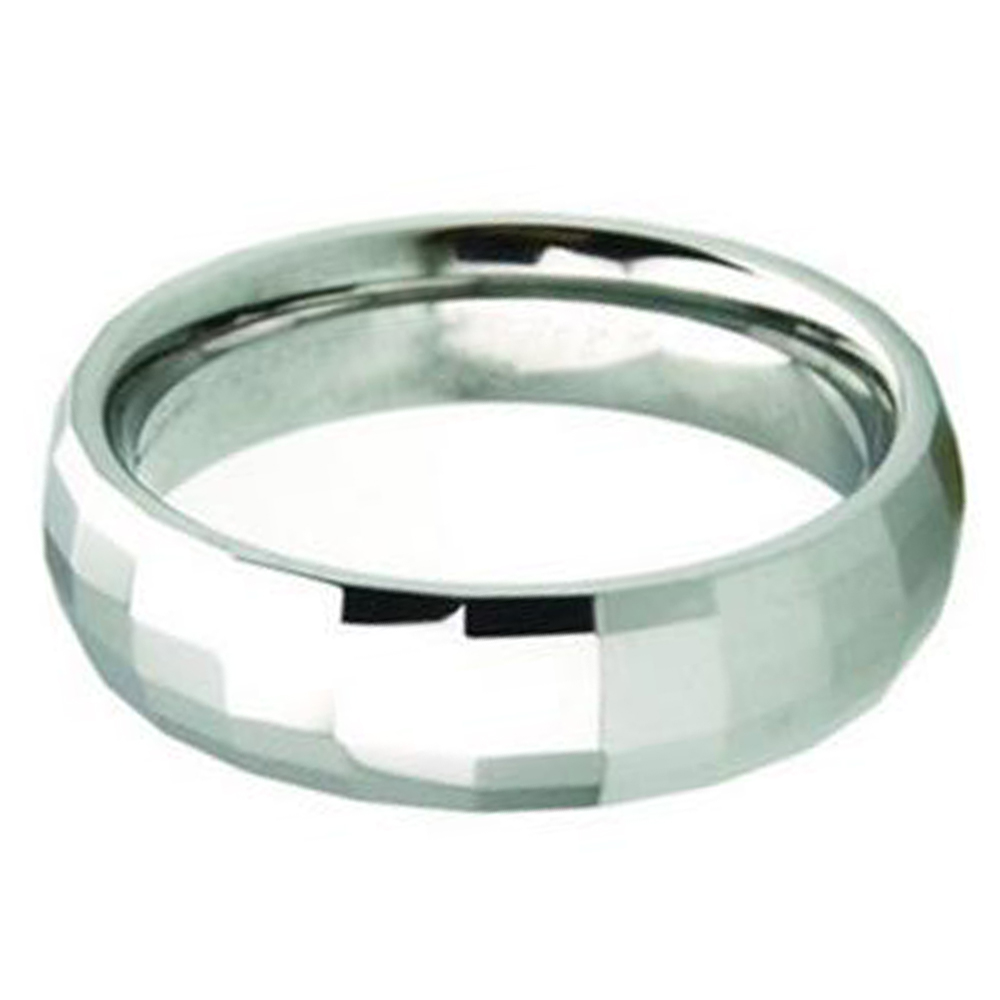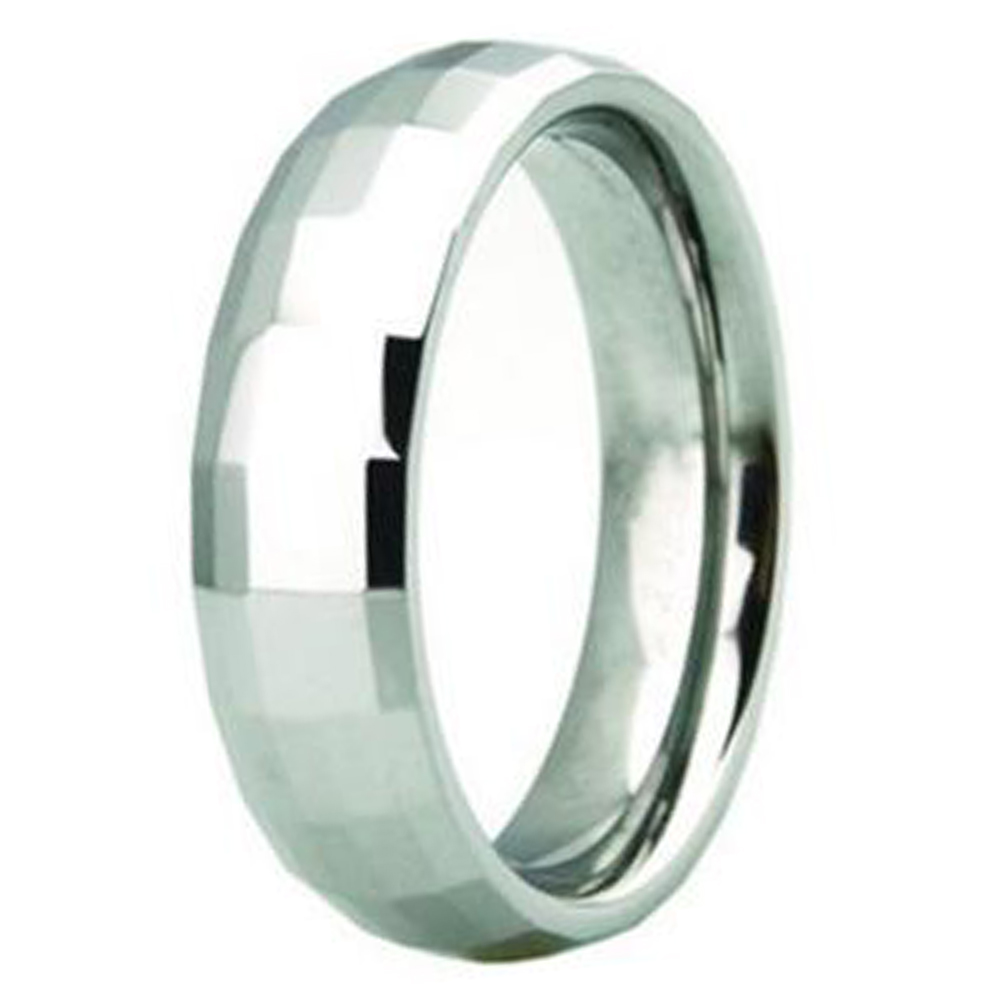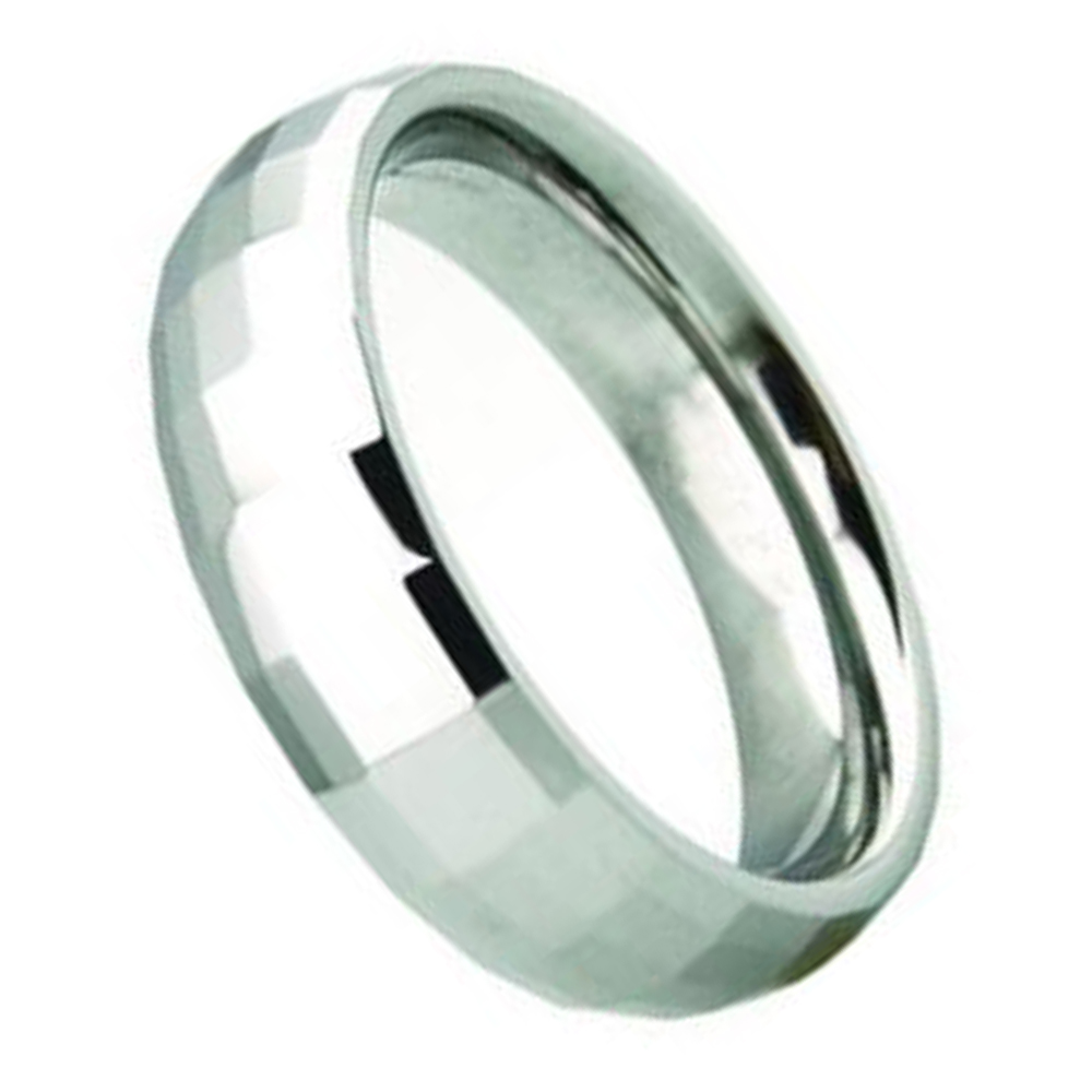 The 6mm silver multi-faceted tungsten engagement wedding band is a unique and eye-catching choice for a wedding ring. The multi-faceted design of the tungstun rings custom adds depth and dimension, catching the light and creating a sparkling effect. The 6mm width of the ring provides a balanced presence on the finger, making it a great choice for men or women who prefer a medium-sized ring. The comfort fit of the ring ensures a comfortable and snug fit on the finger, reducing the risk of the ring slipping or sliding off during daily activities.