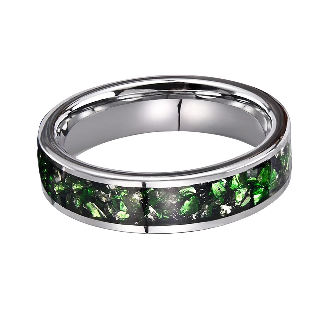 6MM Tungsten Wedding Bands Green Crystal Tungsten Carbide Rings For Women And Men