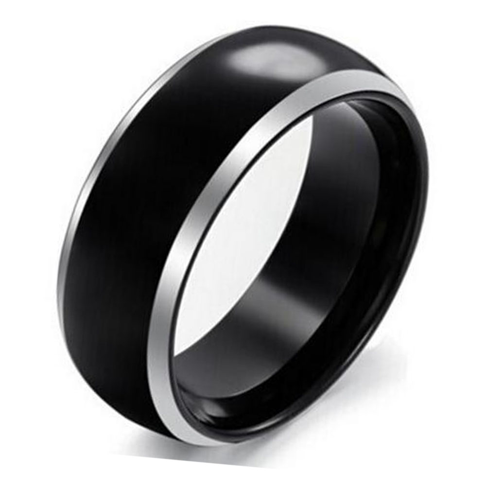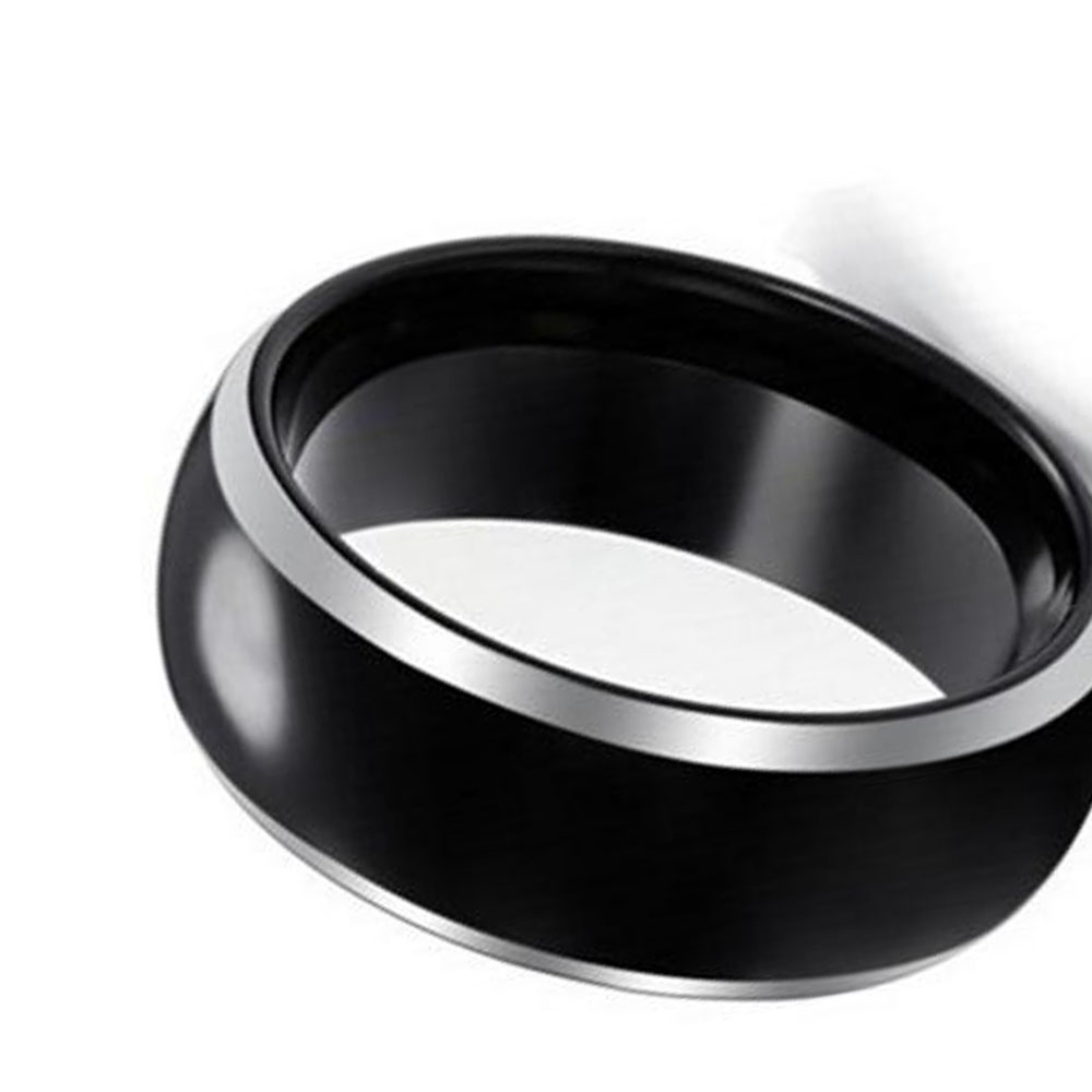 This Tungsten Rings is a sleek and modern piece of jewelry made from tungsten, a strong and scratch-resistant metal that is perfect for everyday wear. The ring features an 8mm band width with a full arc shape, providing a comfortable fit for everyday use. The black tungsten surface is highly polished to create a shiny, reflective finish. One of the standout features of this ring is the polished silver edge, which runs along the top and bottom of the band. This silver edge provides a stunning contrast to the black tungsten surface, giving the ring a bold and sophisticated look.