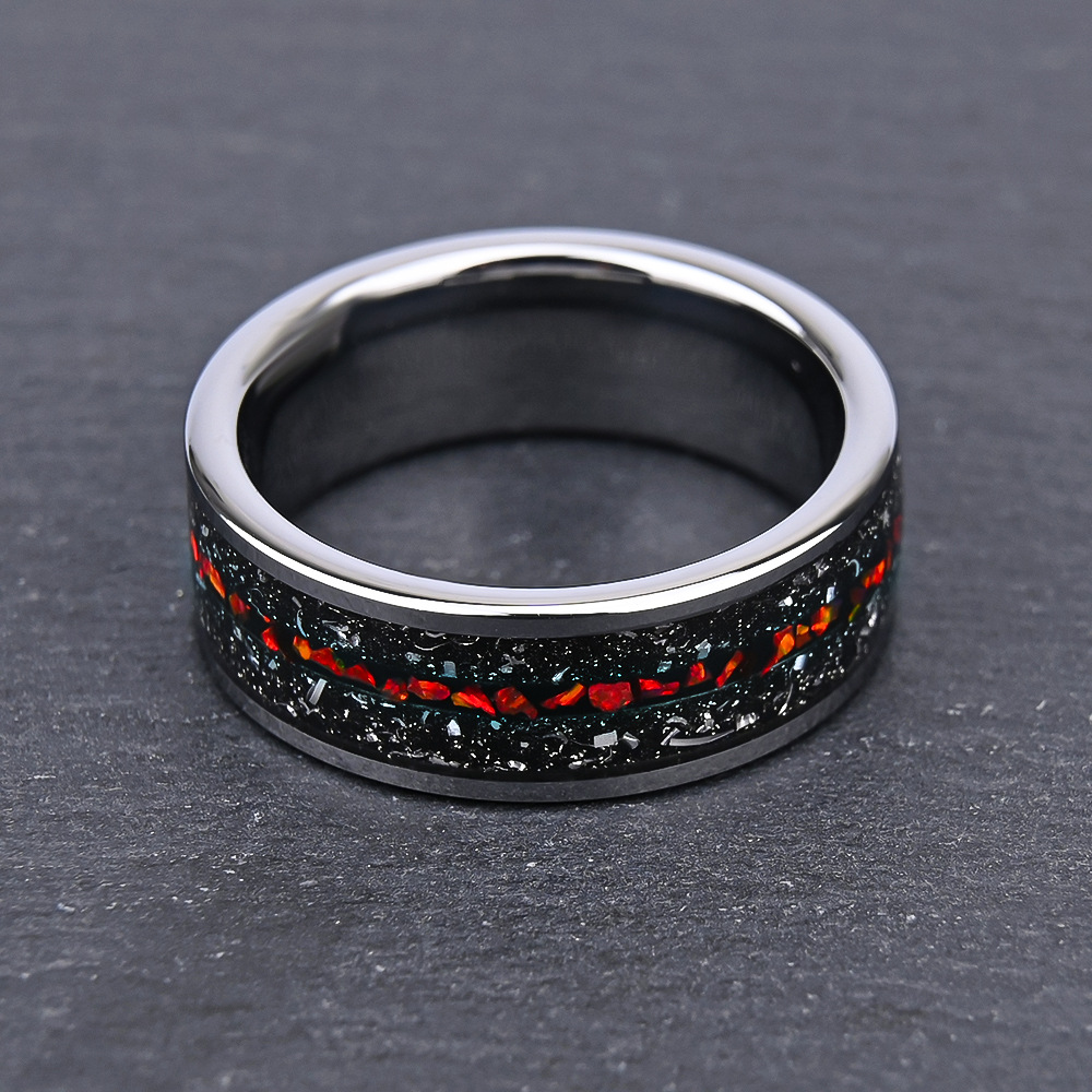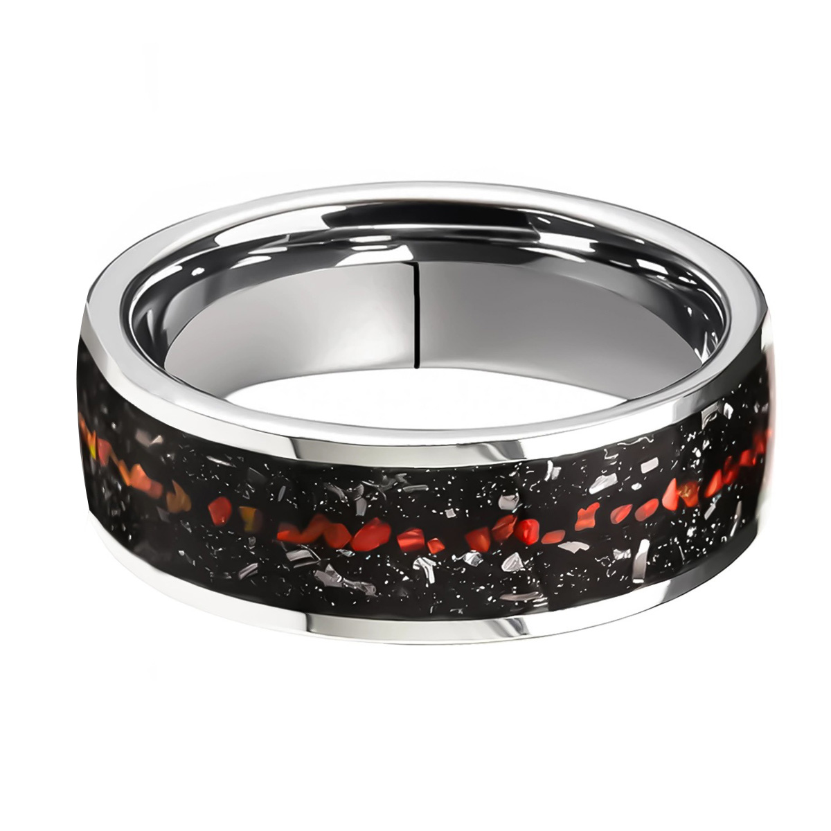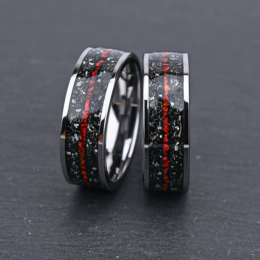 8MM Black Tungsten Carbide Rings Flat-set Meteorite Red Orbale Tungsten Wedding Bands For Women and Men
