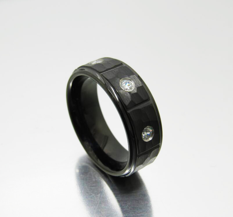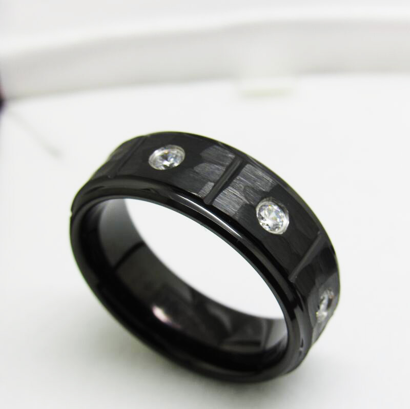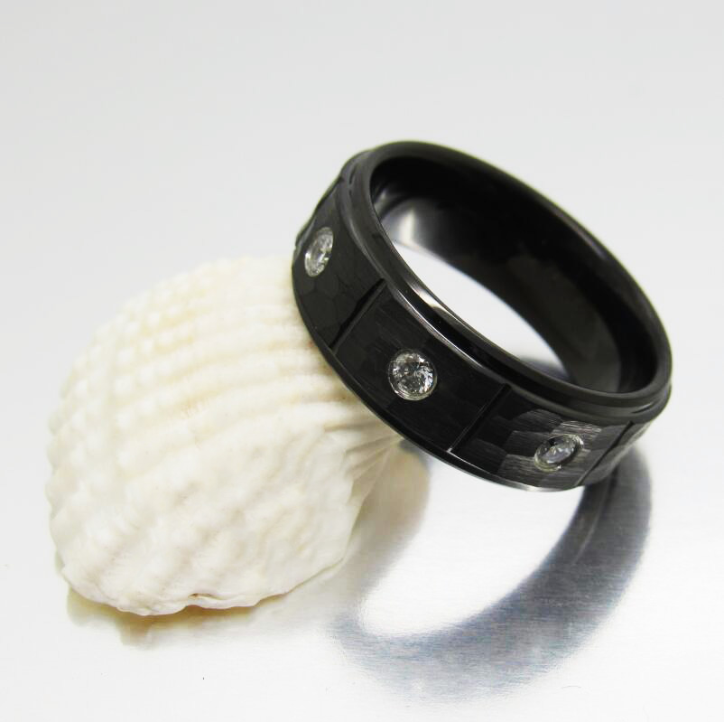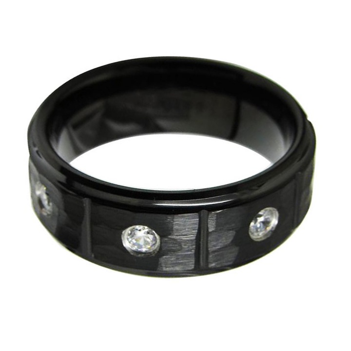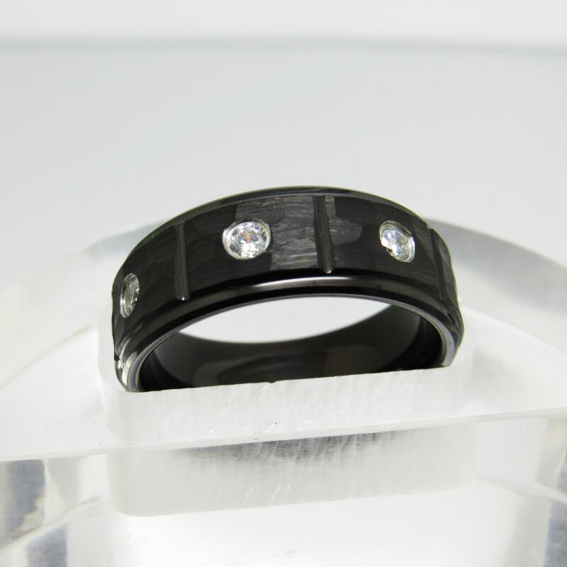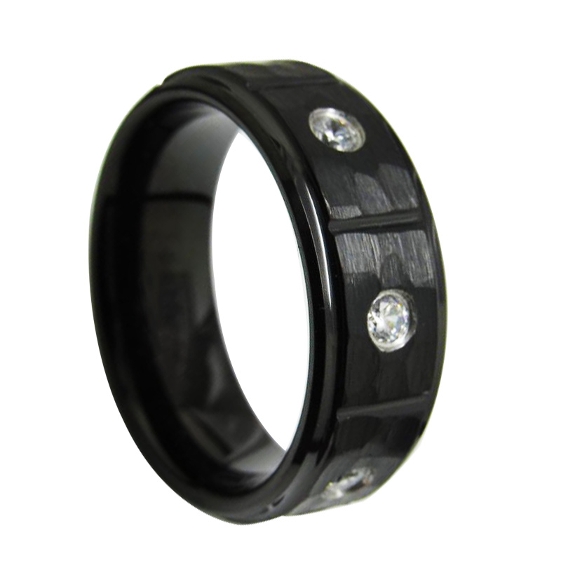 8MM Black Tungsten Carbide Rings With Open-Step Hammered Pattern Eight-Slot Vacuum Electric Womens And Mens