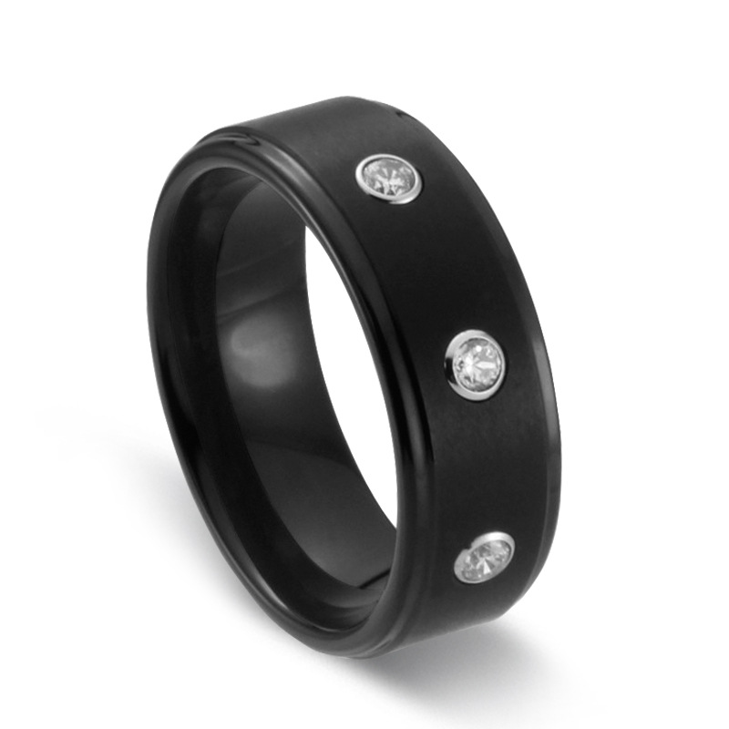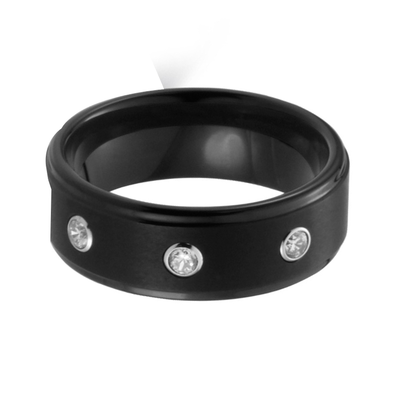 8MM Black Women's Or Men's Tungsten Carbide Wedding Rings Zircon Inlay Polished