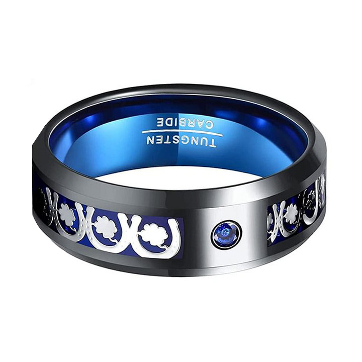 The 8mm Blue Carbon Fiber Tungsten Rings Men with Cubic Zirconia Inlay are a popular choice for men's wedding bands. Tungsten carbide is a durable and scratch-resistant material that makes it an excellent choice for rings that will be worn regularly. The blue carbon fiber inlay adds a stylish touch to the ring, while the cubic zirconia stones provide a touch of elegance and sparkle.