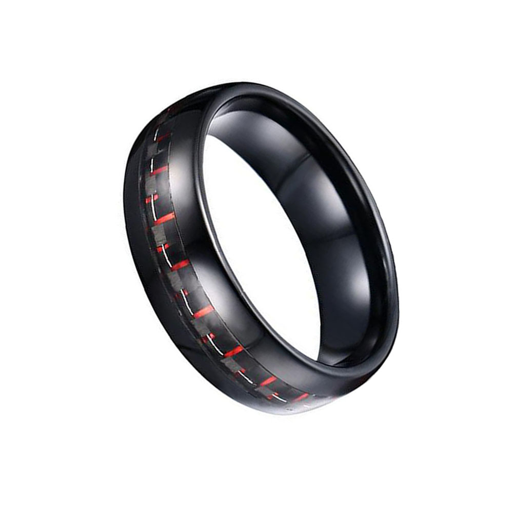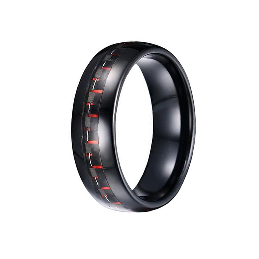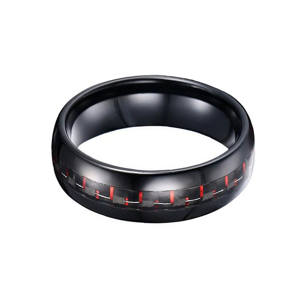 The Domed Black Plated Tungsten Carbide Ring with Red Carbon Fiber Inlay is a stylish and modern option for men's wedding bands. The black plating and red carbon fiber inlay create a sleek and sophisticated look, while the domed shape of the ring adds a touch of elegance. The black plating on the tungsten rings for sale is created using advanced plating techniques and can add a touch of modernity to the ring. However, it's important to note that like other plated rings, the black plating can wear off over time, especially with frequent wear or exposure to harsh chemicals.