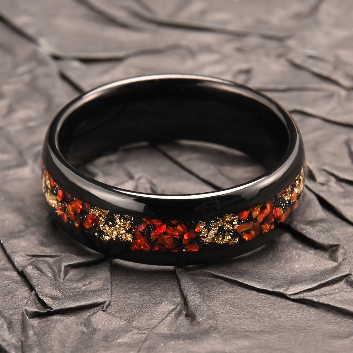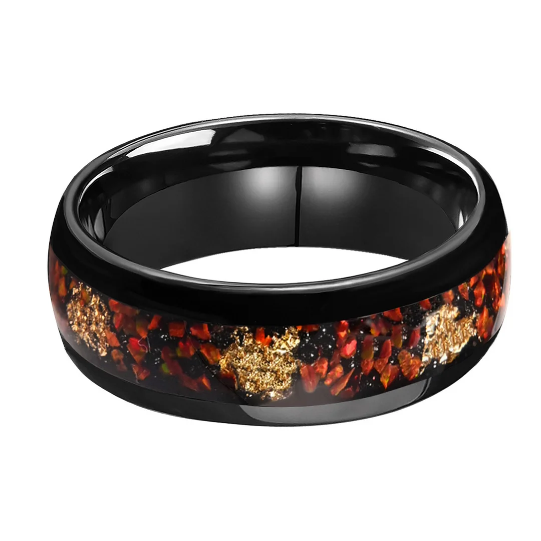 8MM Electroplated Black Tungsten Carbide Rings with Red Opal Foil Wedding Bands For Women and Men