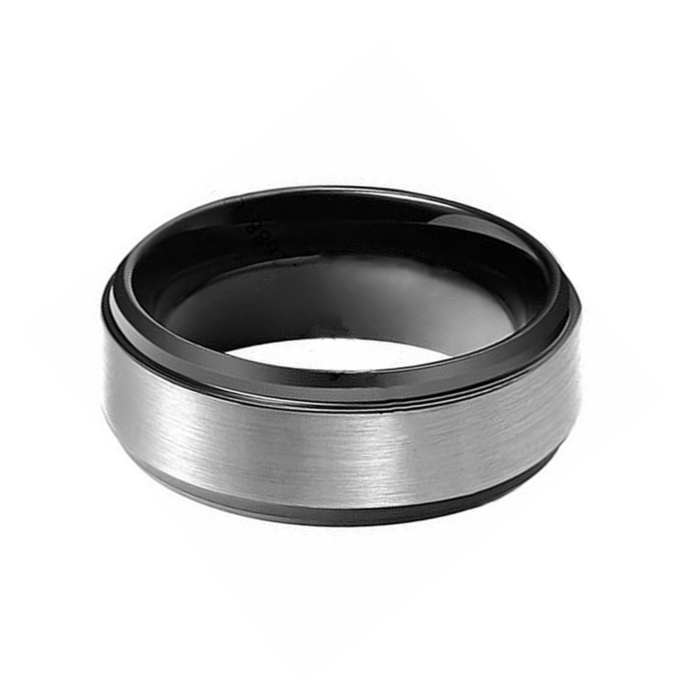 8mm black tungsten carbide rings for men matte brushed engagement wedding band beveled edge high polished inside.Tungsten carbide rings are extremely durable and scratch-resistant.These affordable wedding bands are also less expensive than gold,platinum and other traditional jewelry metals.