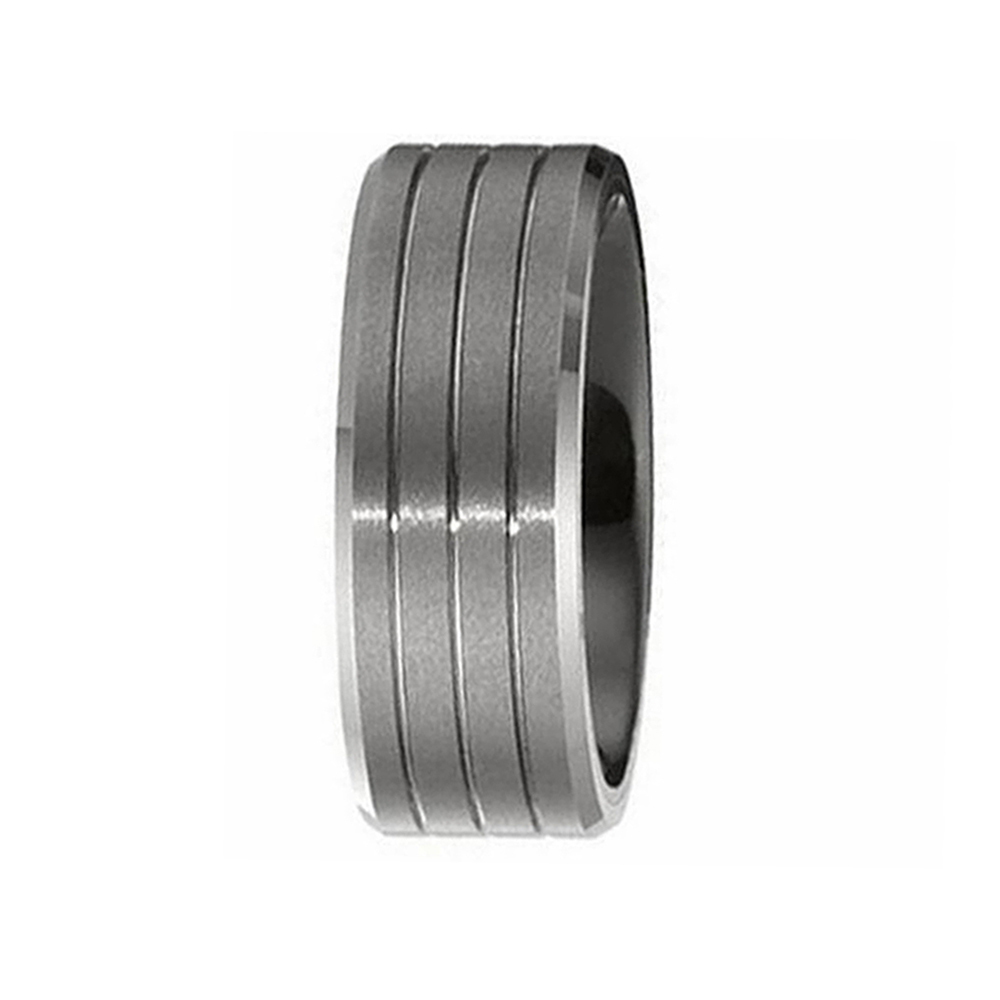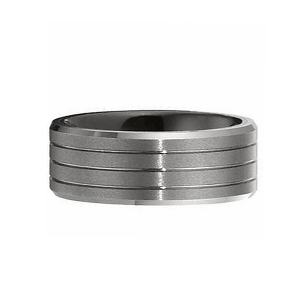 8mm Matte Brushed Mens Grooves Tungsten Carbide Rings Bevel Edge Wedding Band